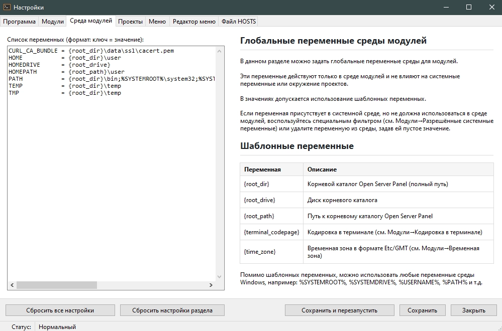 • Шаблоны: Шаблоны конфигурации хостов (host_static, host_php, host_proxy), а также пользовательские конфигурационные файлы хостов, теперь обрабатываются парсером шаблонных переменных, как и остальные конфигурационные файлы.