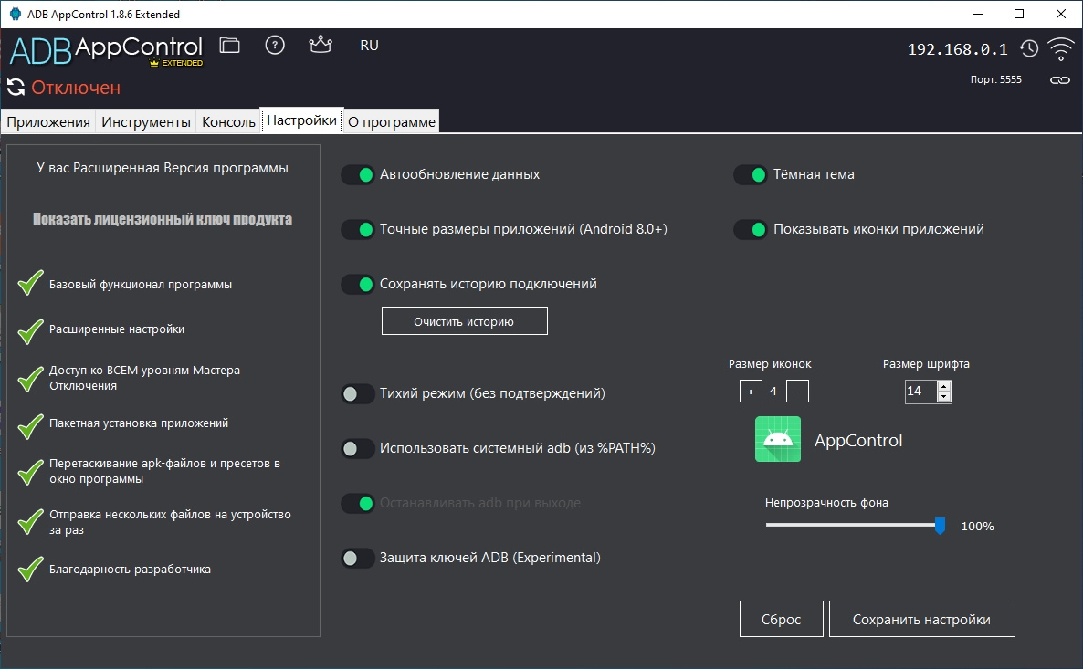 Торрент ADB AppControl 1.8.6 Extended by GPFault подробно: