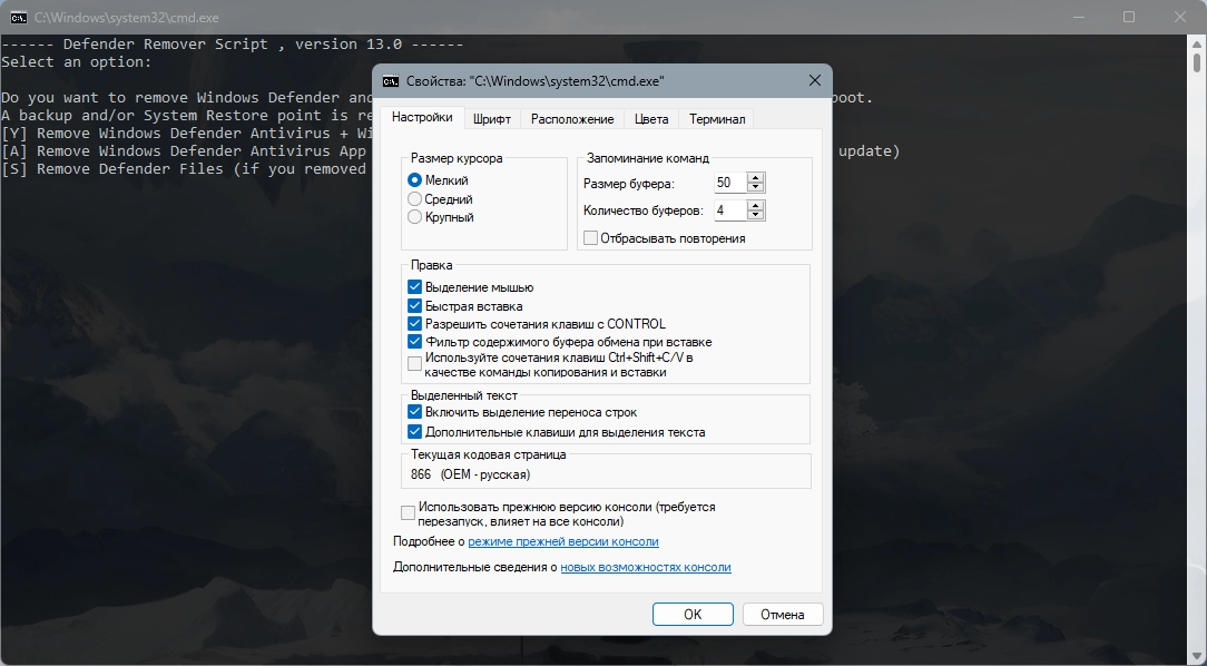 ------ Defender Remover Script, версия 12.8.4 ------