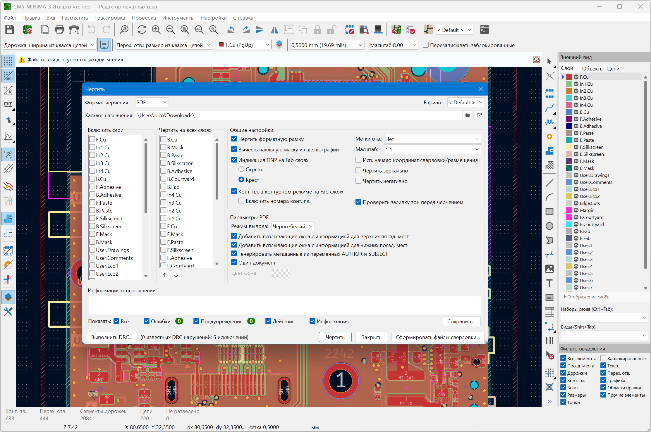• 3D-просмотрщик готовых плат на основе OpenGL.