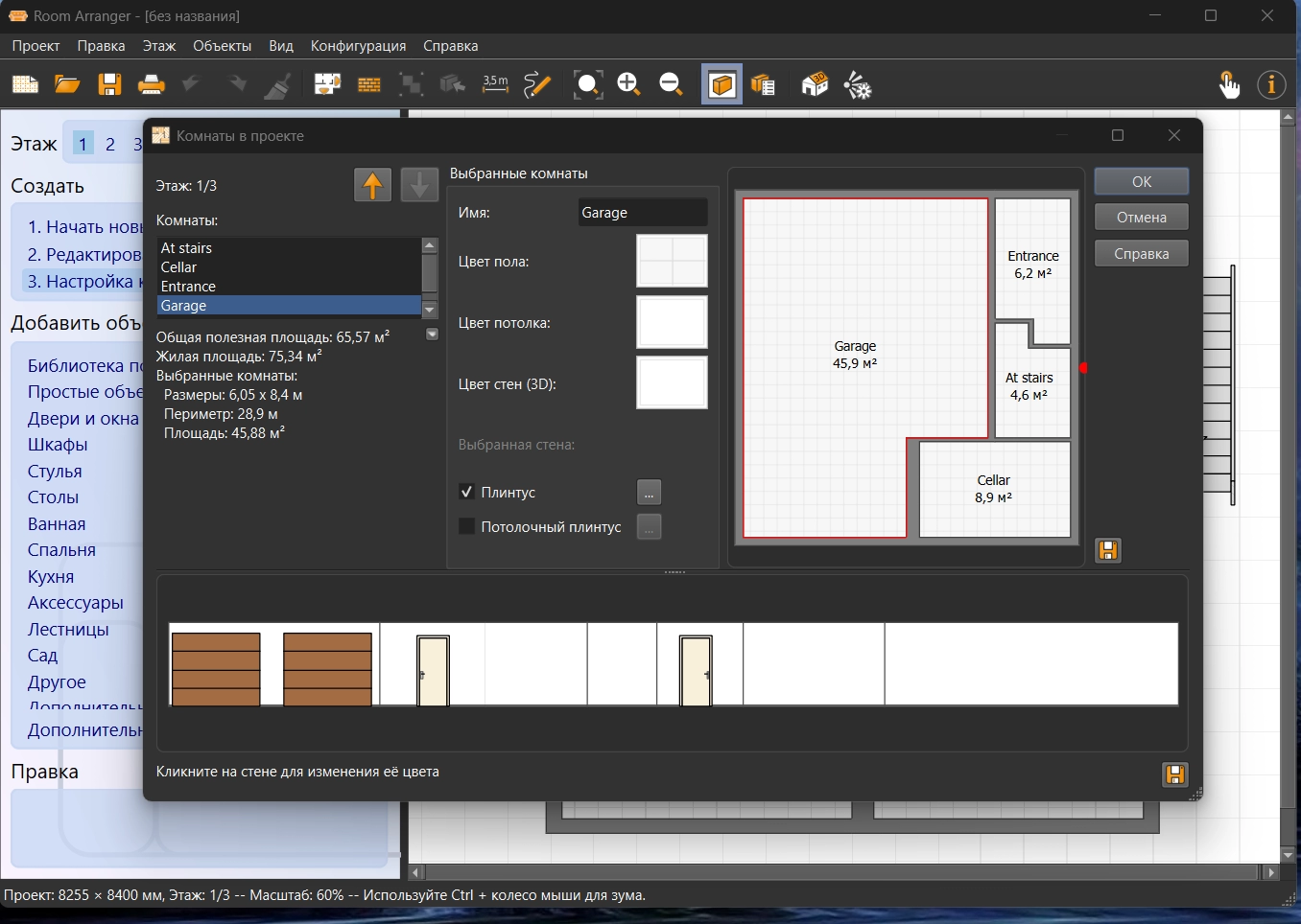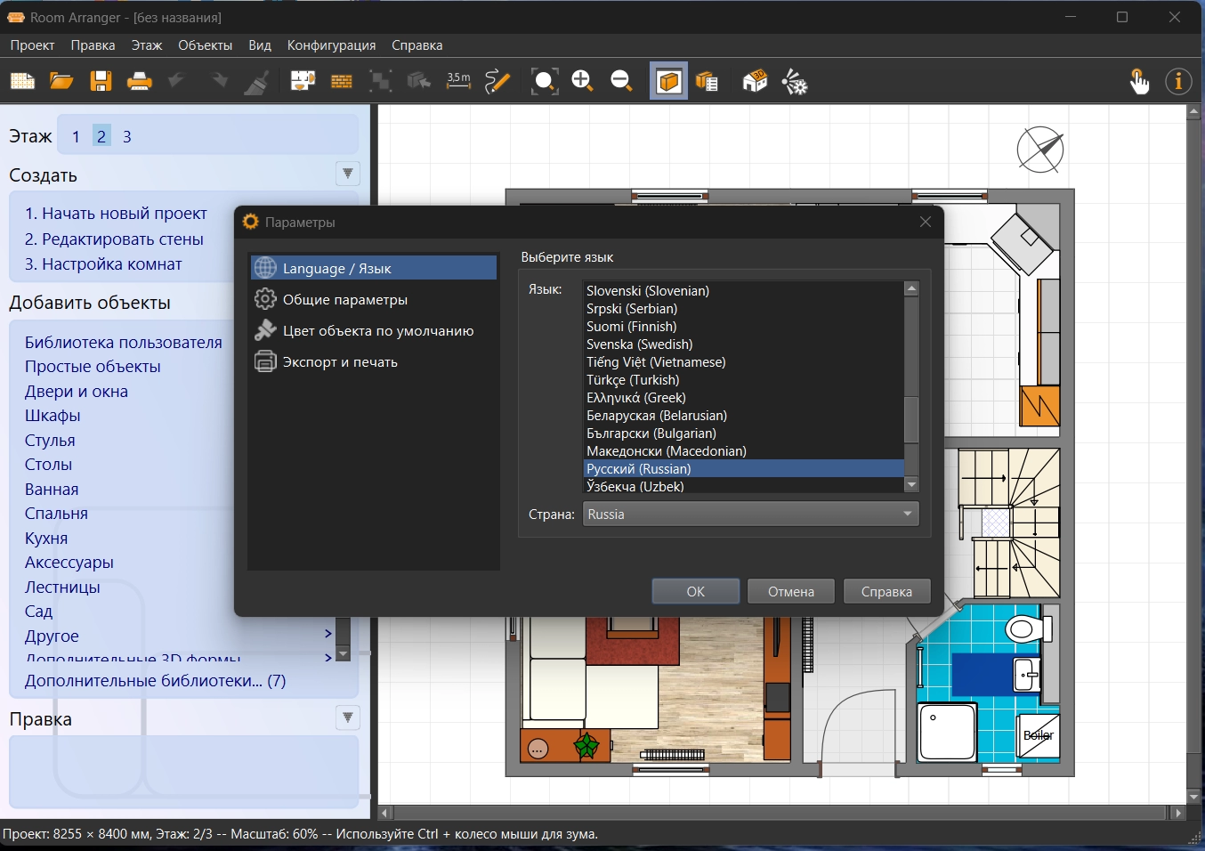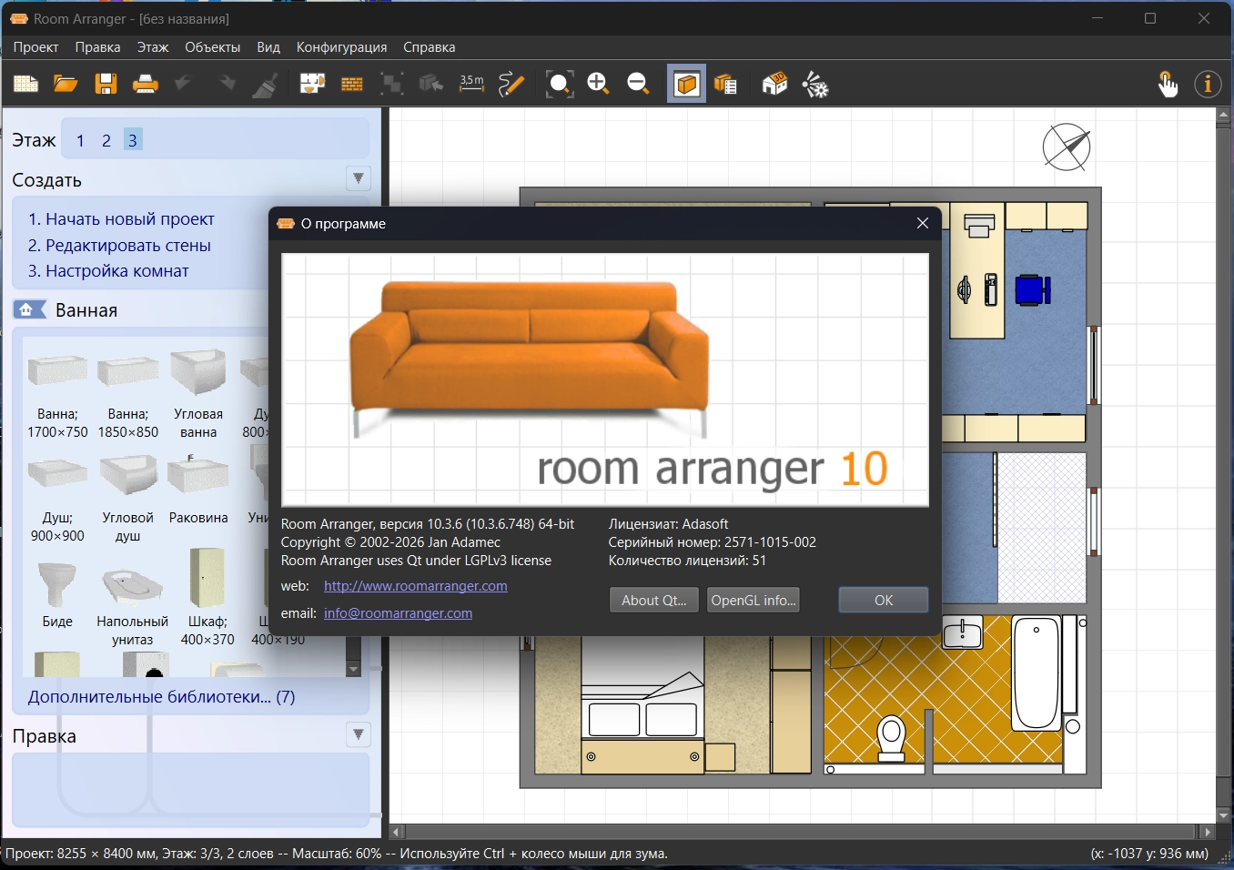 Room Arranger - программа специально предназначенная для создания, разработки, анализа интерьеров или дизайна помещений. Она будет реально полезна и поможет вам, если вы решили перенести стены, сделать перепланировку или простую перестановку и размышляете, что и куда передвинуть. Room Arranger позволяет визуально наглядно передвигать, вращать, менять размеры и цвет, а также самому создавать предметы интерьера, которых еще нет у вас в наличии, но вы хотели бы их иметь. После всех манипуляций можно посмотреть результат в 3D варианте.