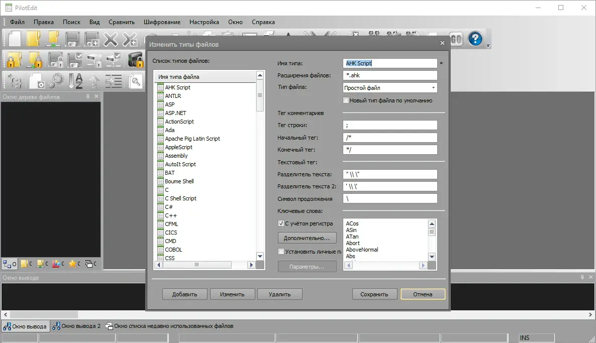 PilotEdit поддерживает более 30 типов типов файлов.