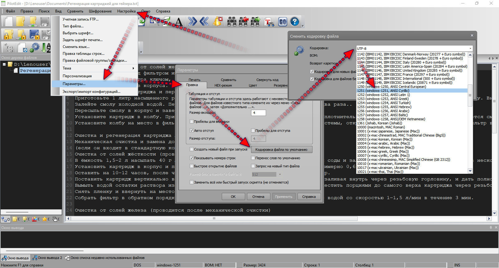 PilotEdit автоматически настроит кодировку текста при копировании/вставке между файлами с разными кодировками.