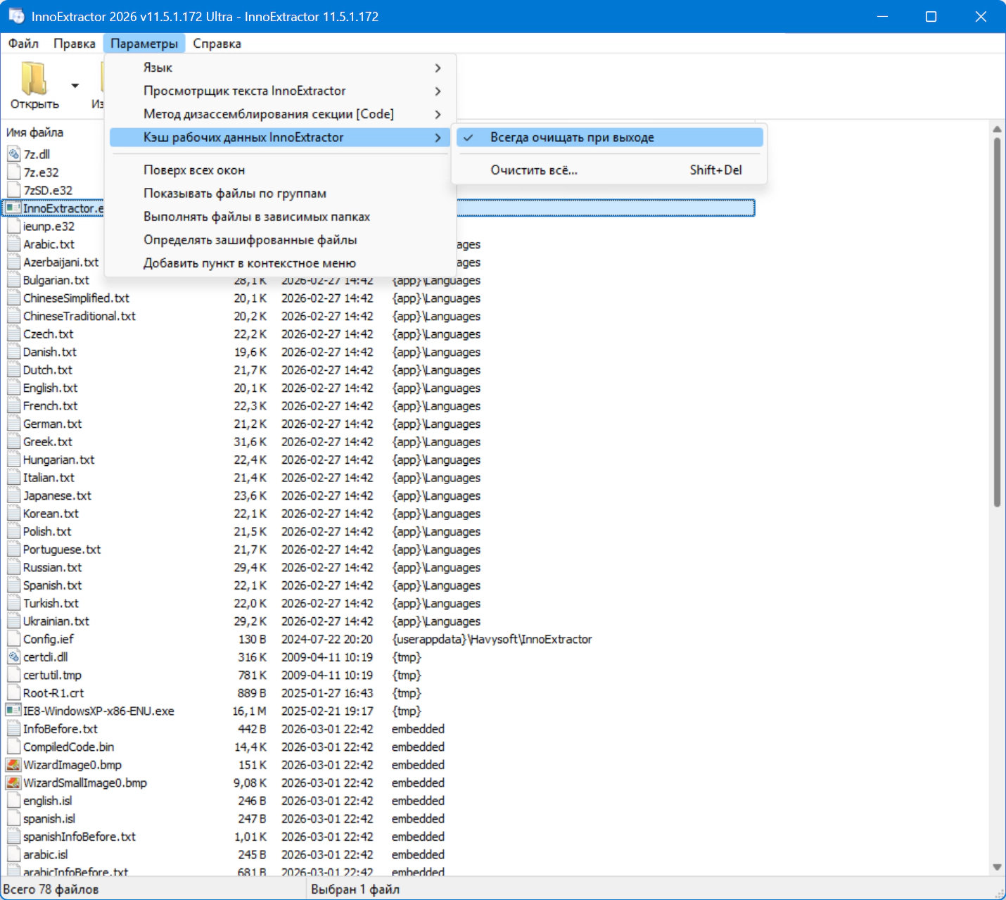 • Ваши настройки в папке: "InnoExtractor\AppData\Roaming\Havysoft\InnoExtractor\Config.ief"