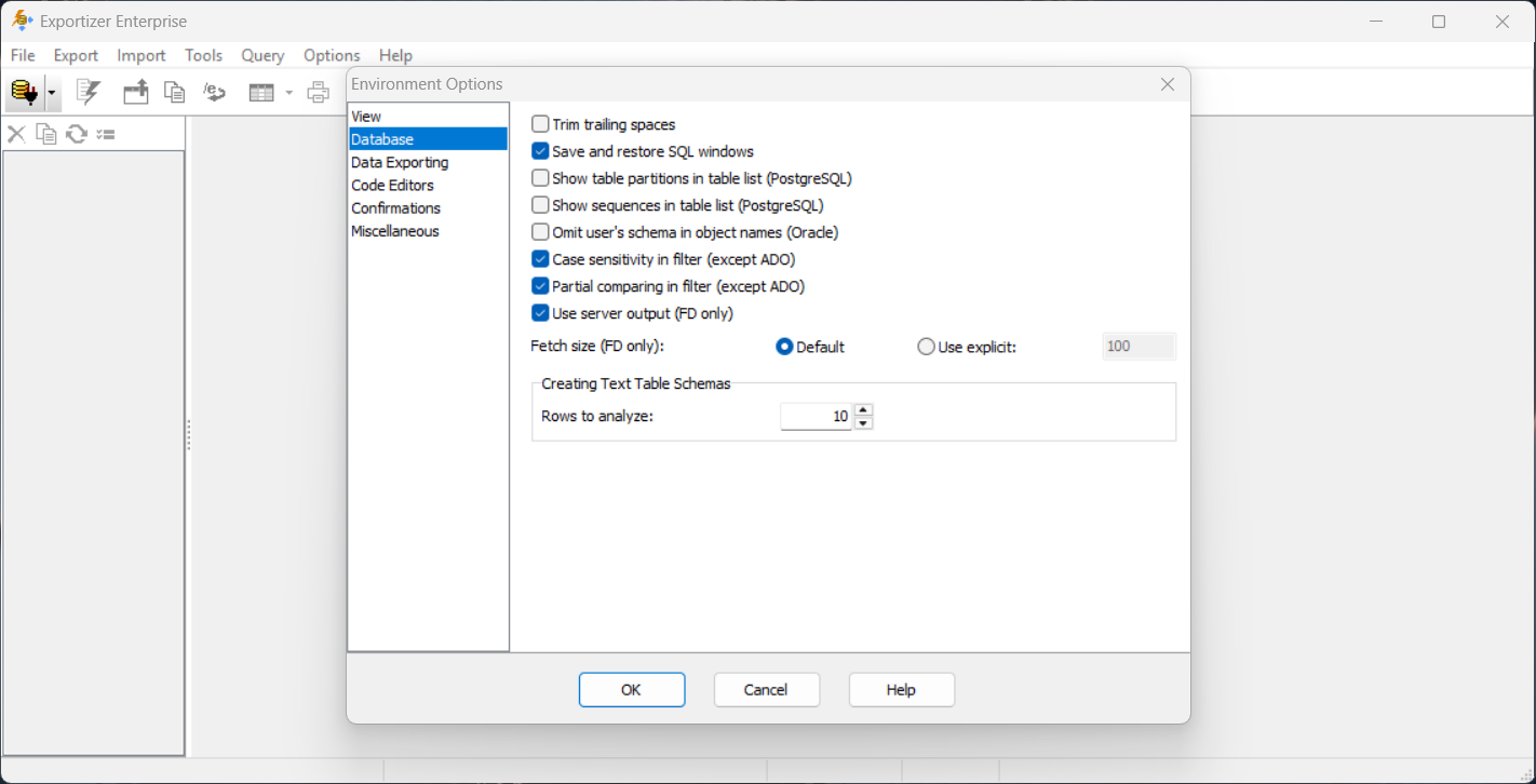 • Для различных форматов экспорта доступно множество опций. Это могут быть сопоставления между исходными и целевыми таблицами и полями, диапазонами столбцов и записей, а также множество параметров, специфичных для конкретного формата.