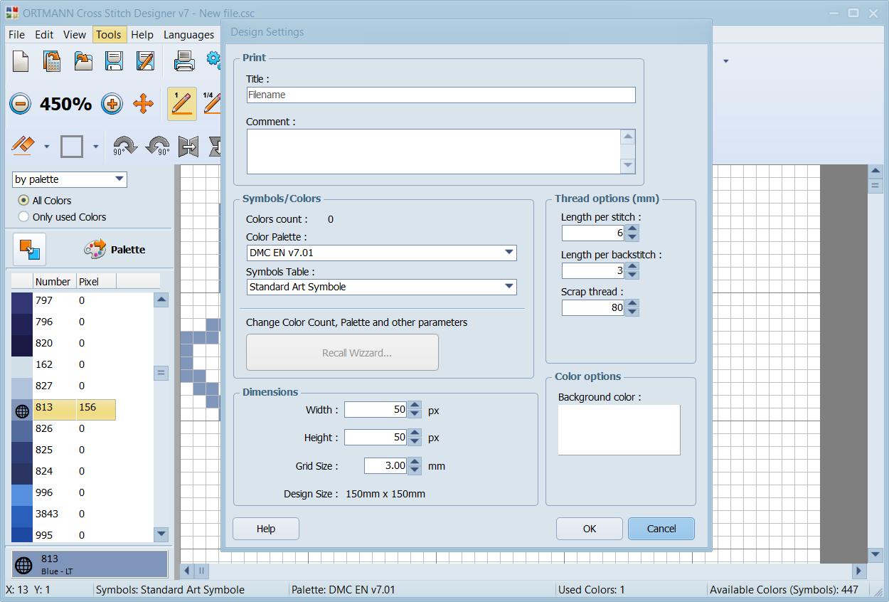 • Программа поддерживает около 574 цветов из цветовой палитры DMC, а также цветов других производителей ниток.