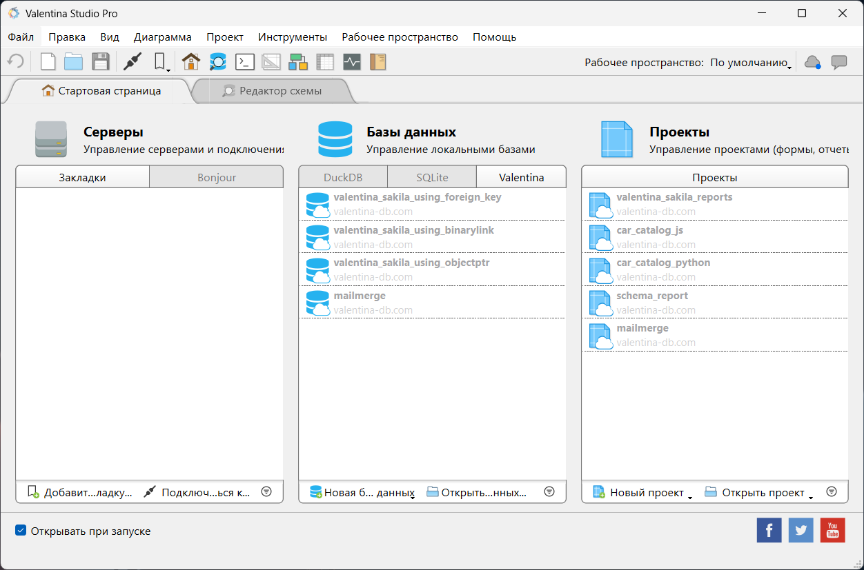 Valentina Studio — это универсальный инструмент для управления базами данных, позволяющий работать с DuckDB, MariaDB, MySQL, MongoDB, SQL Server, PostgreSQL, SQLite и Valentina DB. Valentina Studio позволяет подключаться ко всем основным СУБД, выполнять запросы и создавать диаграммы, чтобы лучше понимать критически важные бизнес‑данные.