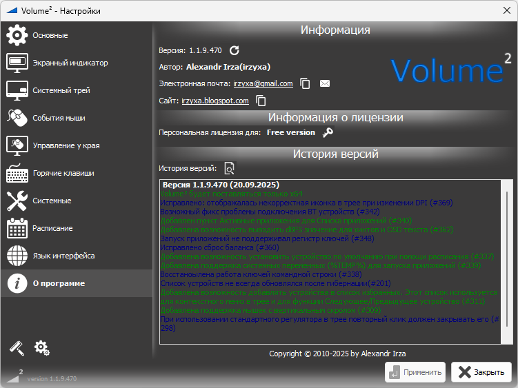Регулятор громкости для Windows Volume2 1.1.9.470 Beta + Portable