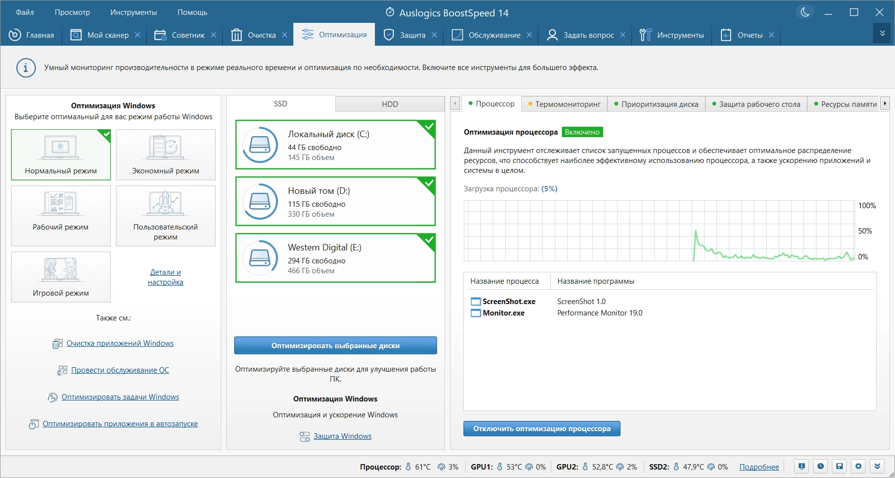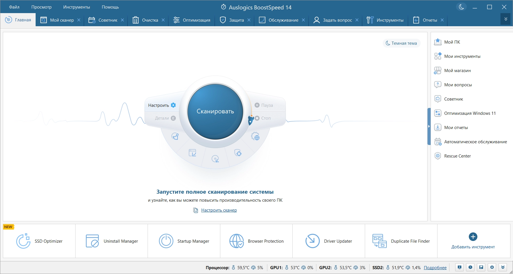 Auslogics BoostSpeed - популярный набор инструментов для оптимизации и настройки вашей операционной системы. С помощью этой программы вы сможете значительно оптимизировать работу вашей системы, с легкостью настроить различные параметры Windows, очистить жесткий диск и системный реестр от мусора и ненужных записей, сделать дефрагментацию дисков и реестра, а также оптимизировать скорость интернет-соединения и многое другое.