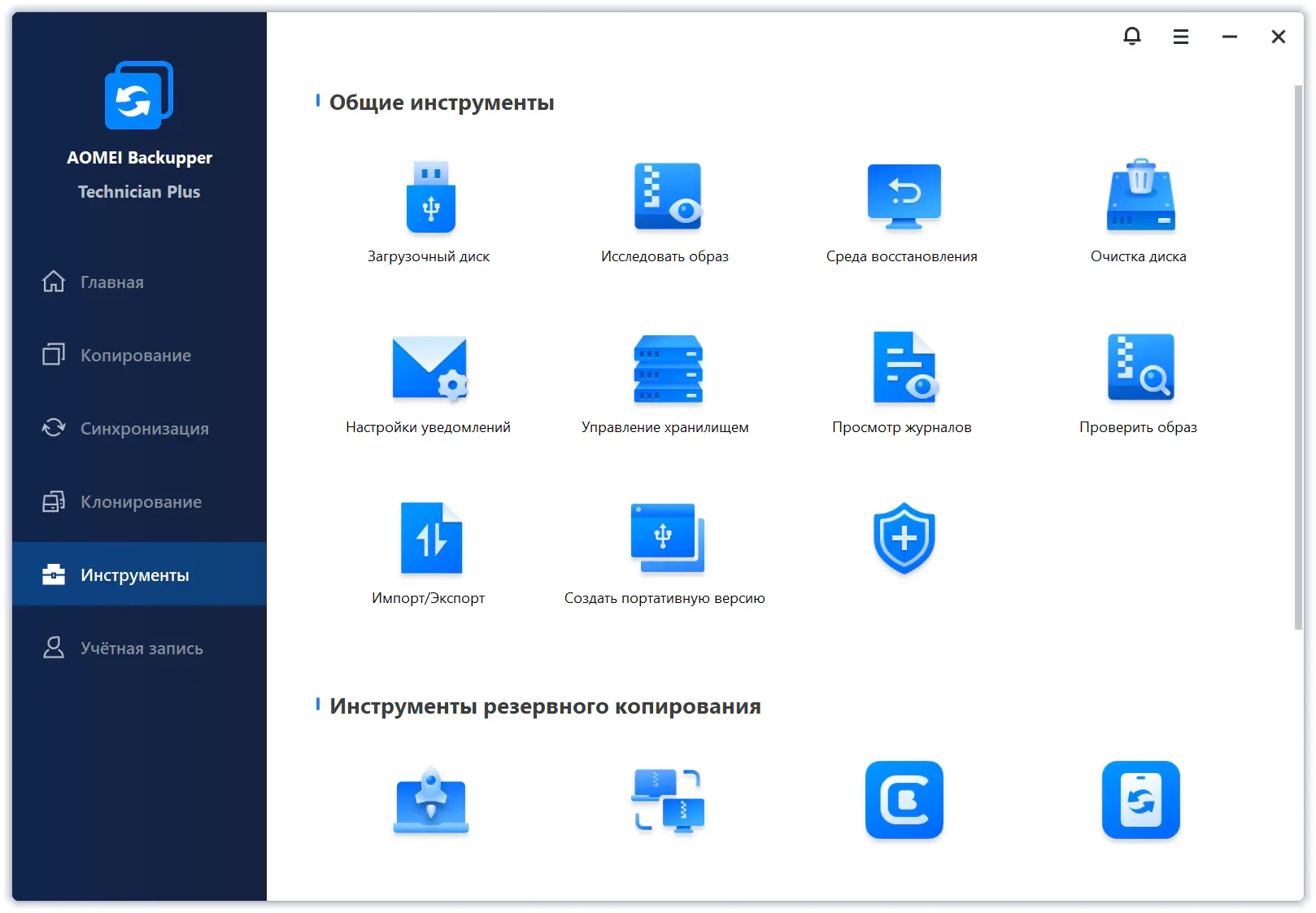• Поддержка полного, частичного, дифференциального и автоматического резервного копирования.