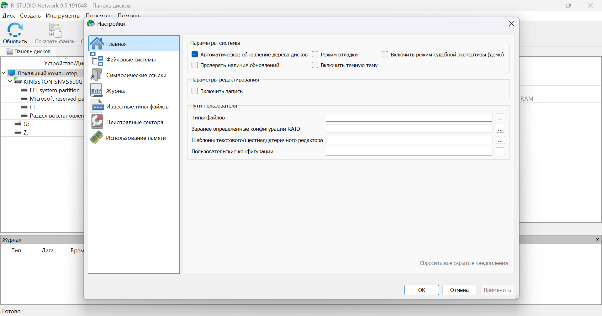 • Права администратора необходимы для инсталляции и запуска R-Studio утилит.