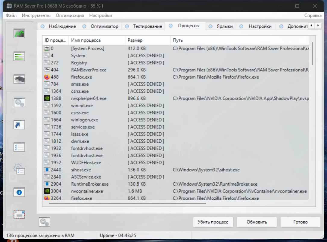 Мониторинг оперативной памяти RAM Saver Professional 26.2.1 by elchupacabra