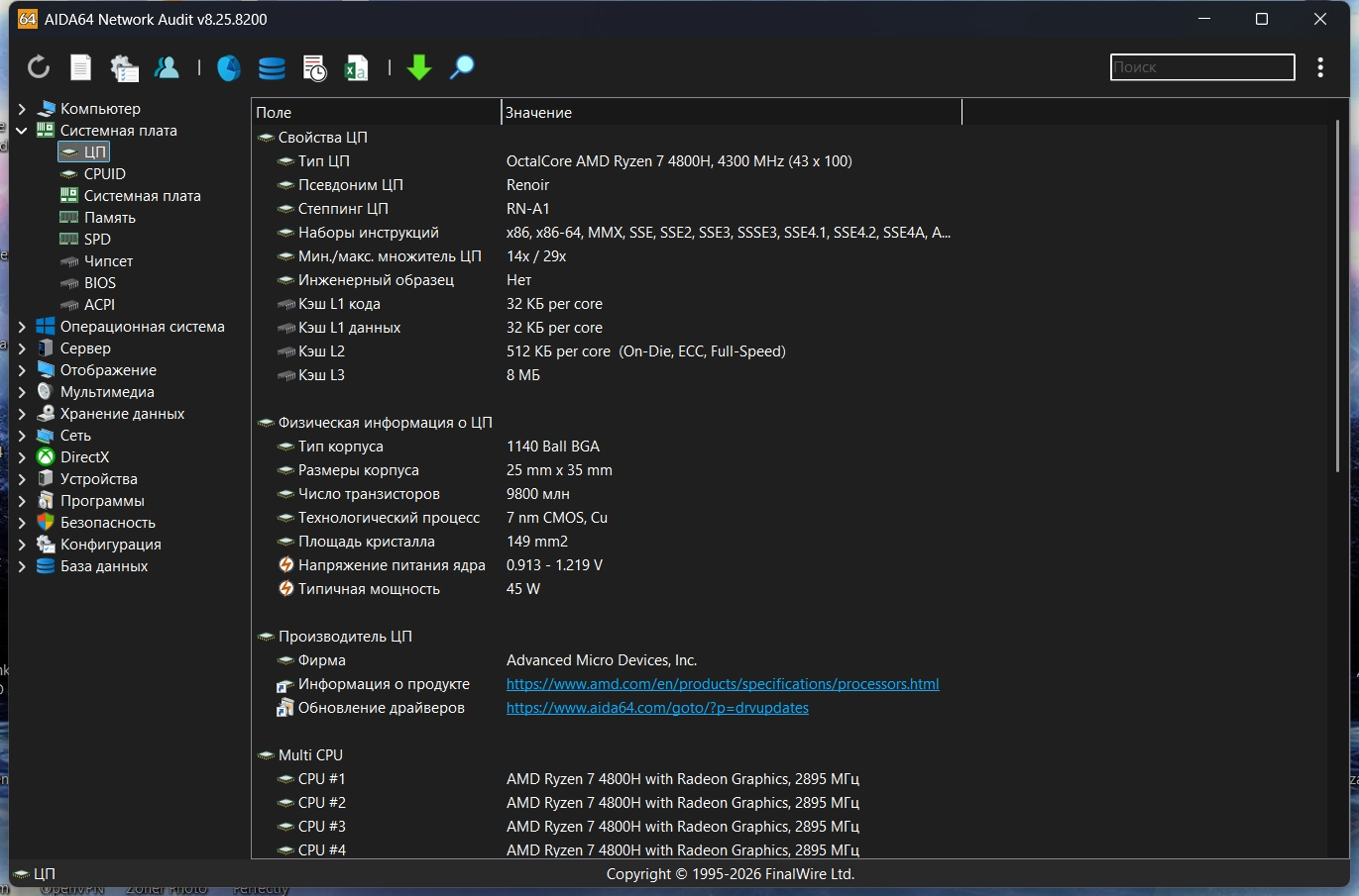 Идентификация компонентов компьютера AIDA64 8.25.8200 Final by KpoJIuK (28.03.2026)