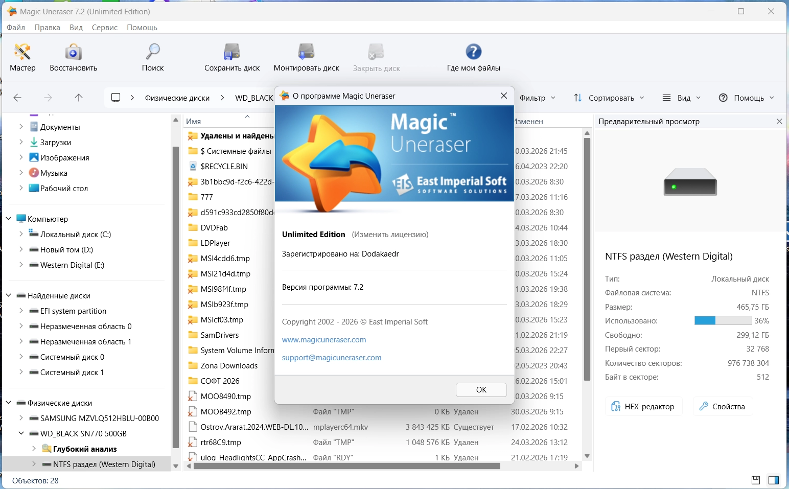 Восстановление файлов Magic Uneraser 7.2 by Dodakaedr