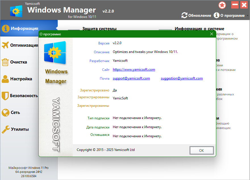 Windows Manager - это универсальная утилита для Microsoft Windows 10/11, включающая в себя более сорока различных утилит для оптимизации, настройки, очистки, ускорения и ремонта Windows 10/11, помогающая ускорить работу системы, устранить системные ошибки, повысить стабильность и безопасность, персонализировать вашу копию Windows 10/11 и оправдать все ваши ожидания.
