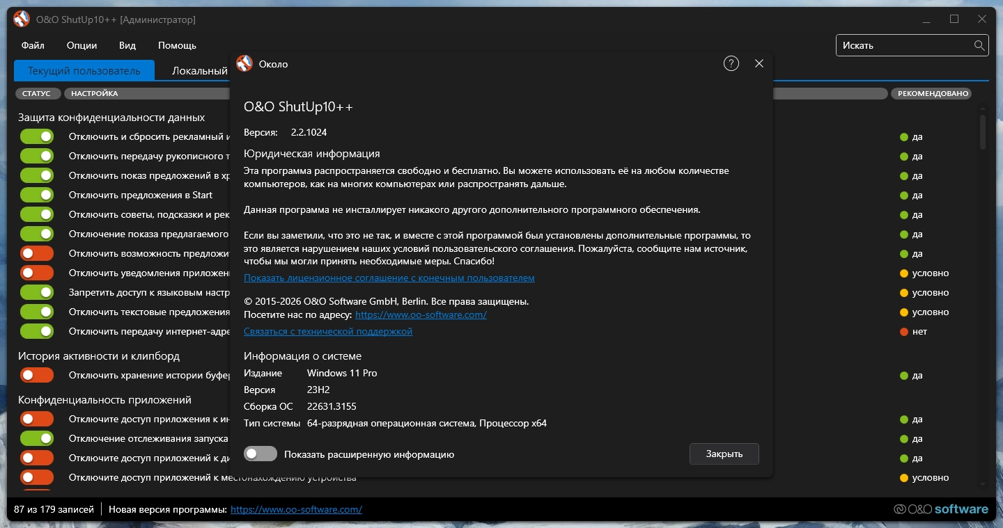 O&O ShutUp10++ настройка безопасности Windows 2.2.1024 Portable