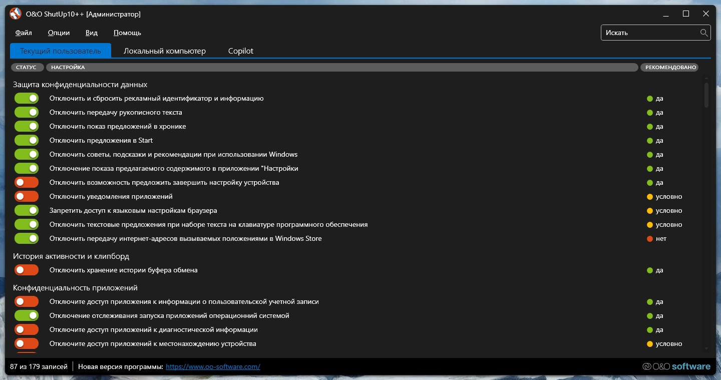 • O&O ShutUp10 предлагает вам самостоятельно решить, какие “удобные”