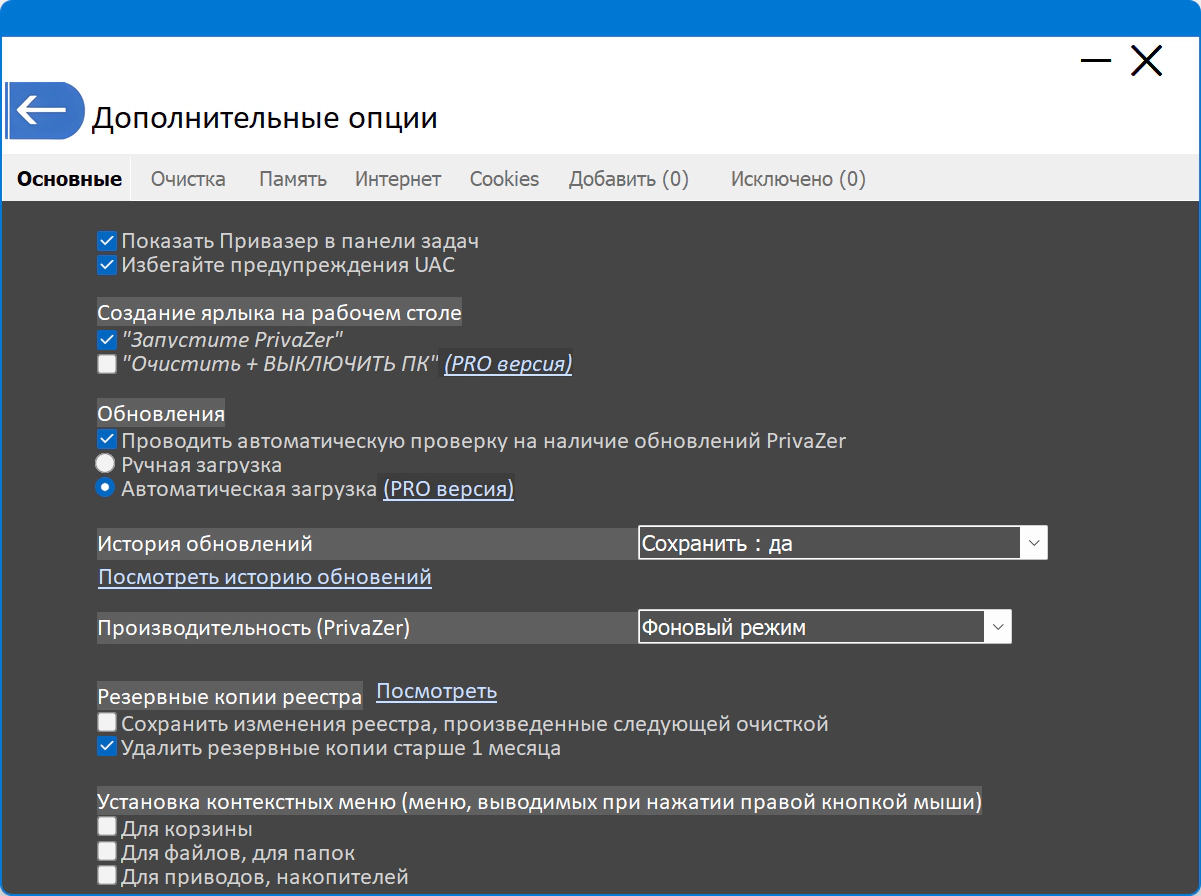Преимущества Pro версии: