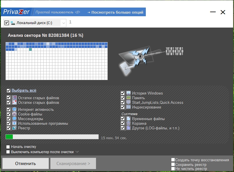 Одним щелчком мыши PrivaZer может безопасно очищать