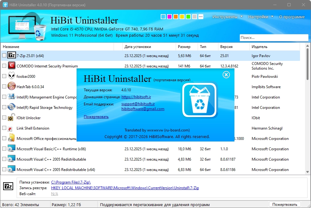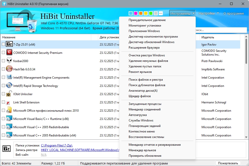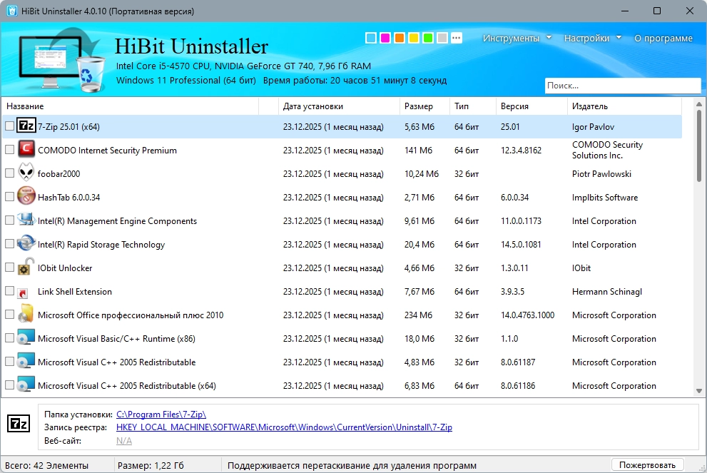 Удаление установленного софта HiBit Uninstaller 4.0.10 + Portable