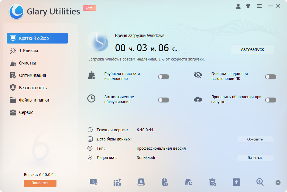 Торрент Glary Utilities Pro 6.40.0.44 by Dodakaedr подробно: