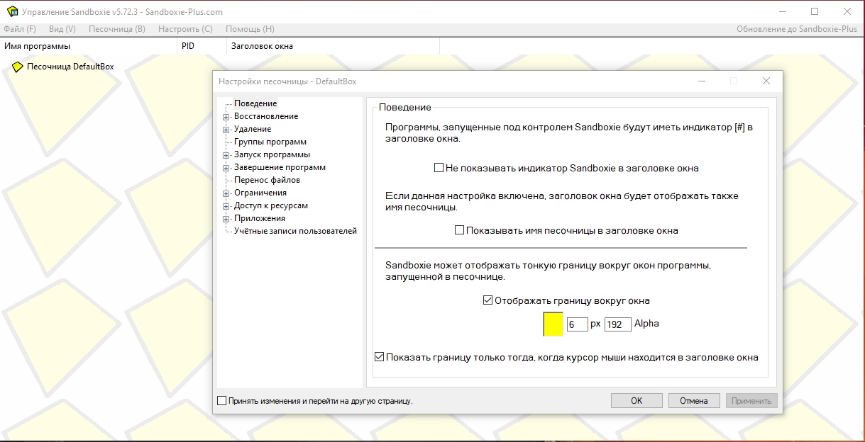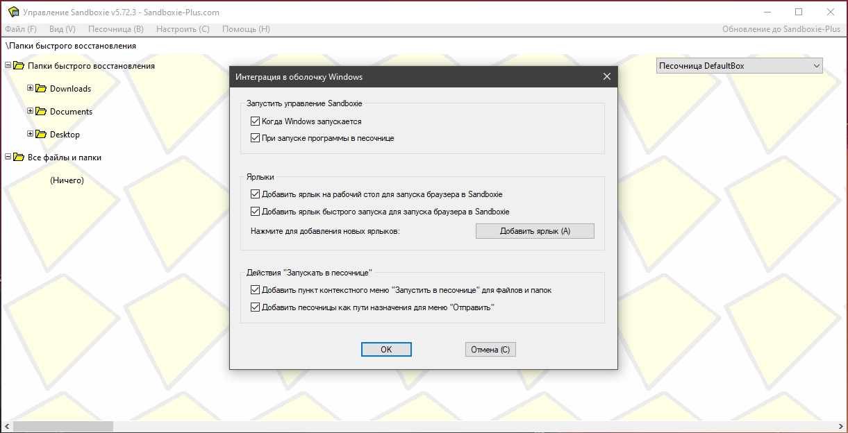 Основная функция, выполняемая данной программой – защита и сохранение вашего компьютера в рабочем состоянии. Достигается это путём создания в системе «временного хранилища», наподобие кэша. Все действия в Интернете, производимые пользователем, все процессы по установке программного обеспечения используют не изменение перманентных параметров системы, а временное хранилище Sandboxie. Благодаря этому можно достаточно легко сделать «откат». Программа настраивается на использование с любыми браузерами, поддерживается и почтовый клиент, но только один – Outlook Express. Целевая аудитория программы Sandboxie достаточно велика, от людей тестирующих программное обеспечение до рядовых пользователей, использующих Интернет, или просто не желающих навредить своему компьютеру неизвестной программой.
