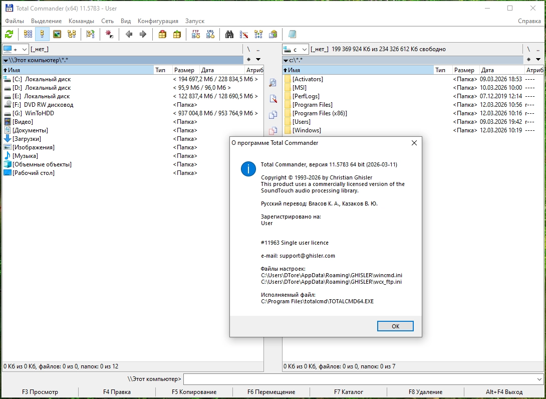 Total Commander является самым мощным и стабильным файловым менеджером для Windows с удобным пользовательским интерфейсом. Total Commander продолжает добрую традицию двух-панельных файловых менеджеров, но отличается повышенным удобством и функциональностью, поддерживает плагины, имеет множество встроенных полезных инструментов. В программе предусмотрены функциональные просмотрщики для мультимедиа и графических файлов, распаковщики архивов, клиент, позволяющий скачивать или закачивать файлы в несколько потоков. Предусмотрено также множество других функций, необходимых для эффективной работы с файлами.