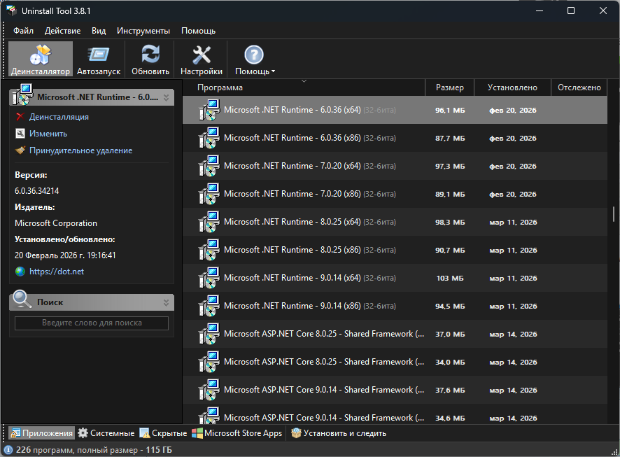 • Тщательный поиск и удаление остатков без необходимости полагаться на штатный деинсталлятор, оставляющий остатки ПО.