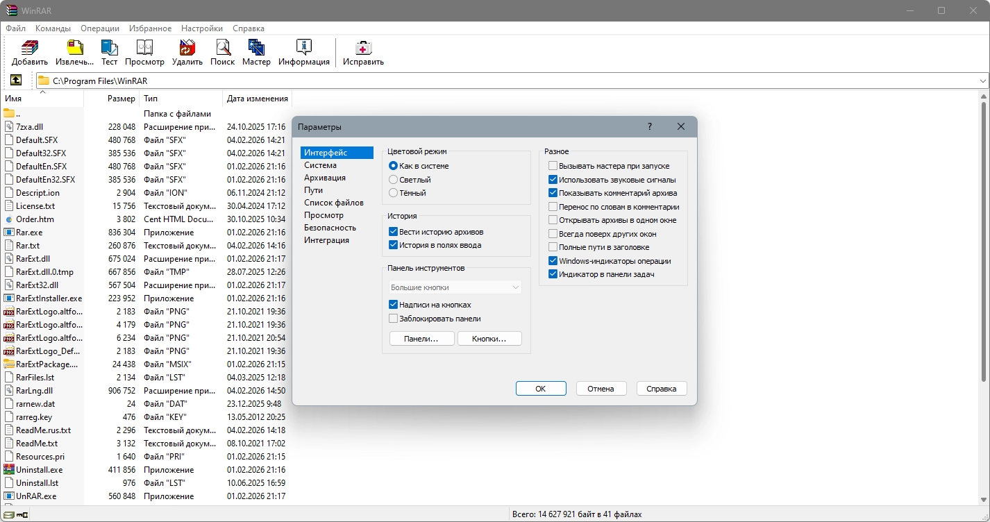 • Дополнительных функции (шифрование данных и имён файлов в архиве, добавление архивных комментариев, ведение протокола ошибок)