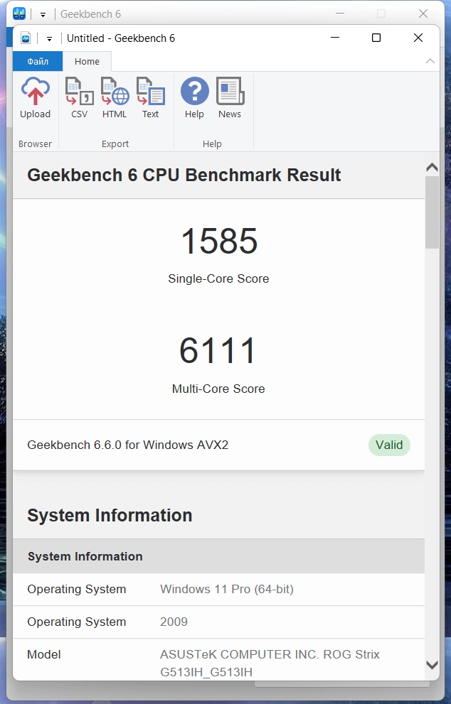 Тест процессора Geekbench 6.6.0 Pro by elchupacabra