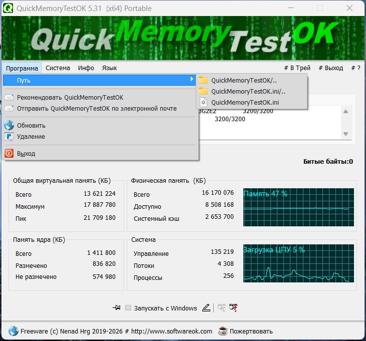 Торрент QuickMemoryTestOK 5.31 + Portable подробно: