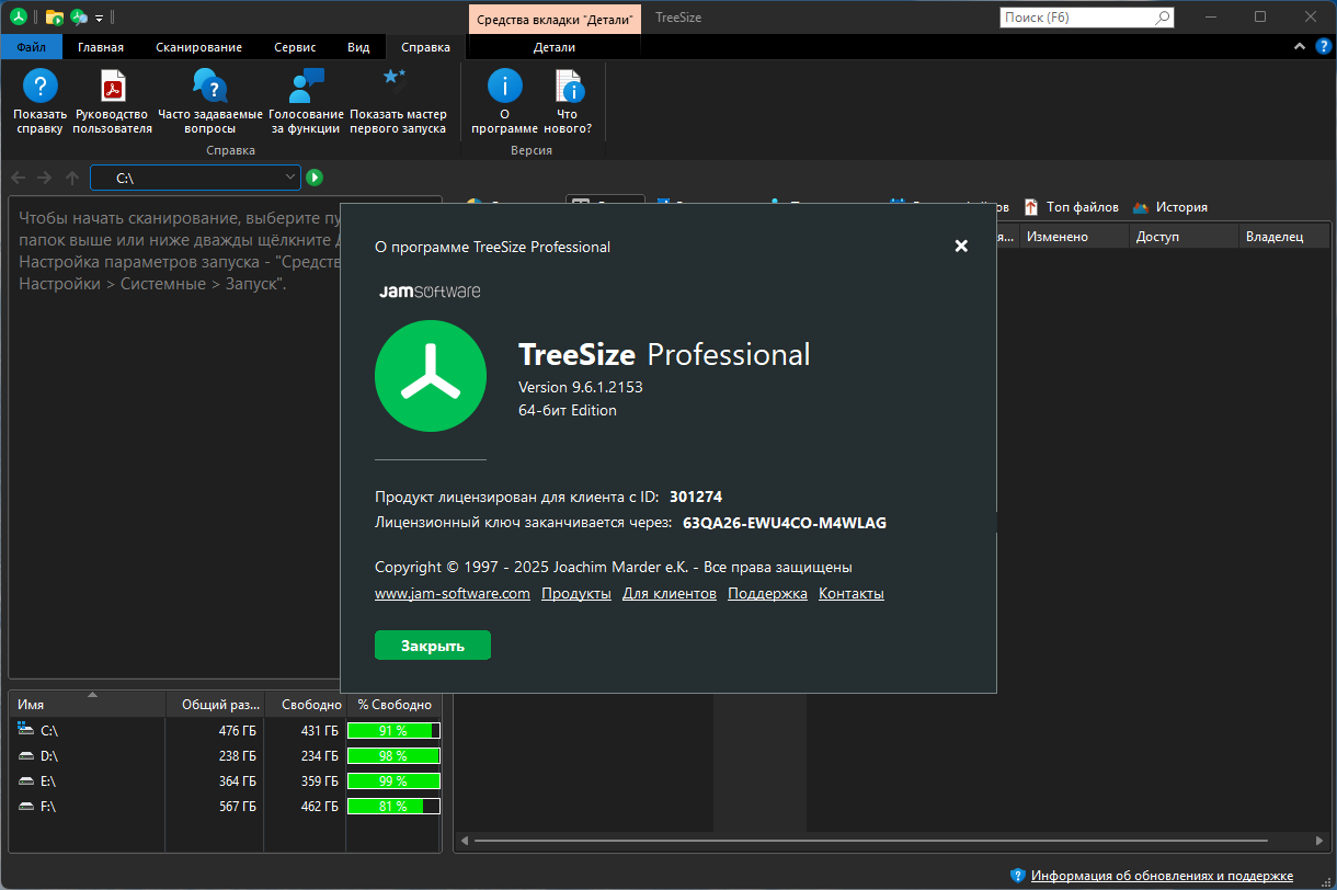 Мониторинг дискового пространства TreeSize Professional 9.6.1.2153 by elchupacabra