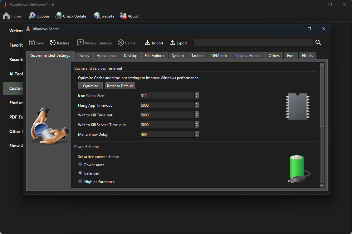 TweakNow WinSecret Plus! - позволяет пользователям исследовать скрытые настройки в Windows 10/11.