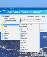Run-Command - небольшая программа, которая создана стать отличной заменой стандартной функции Windows под названием "Выполнить" - естественно тут вы получите гораздо больше возможностей, и после запуска это видно сразу. Например из главного окна можно сразу запустить нужный вам элемент от имени Администратора, под строкой ввода есть 5 иконок, которые дают быстрый доступ к частым элементам, например редактору реестра и так далее. Вы сможете сами добавлять в избранное частые команды, чтобы потом каждый раз не набивать их. Можно группировать ваши команды по категориям, это тоже очень удобно.