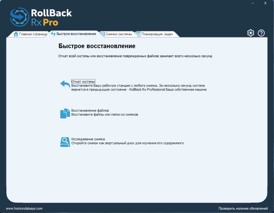 RollBack Rx - это решение для динамического мгновенного восстановления. Оно может быть автоматизировано для бесшумного создания снимков в фоновом режиме. Каждый снимок занимает всего несколько секунд. И когда вы захотите восстановить свой ПК, вы сможете быстро вернуться к любому предыдущему состоянию за время, необходимое для перезагрузки компьютера.