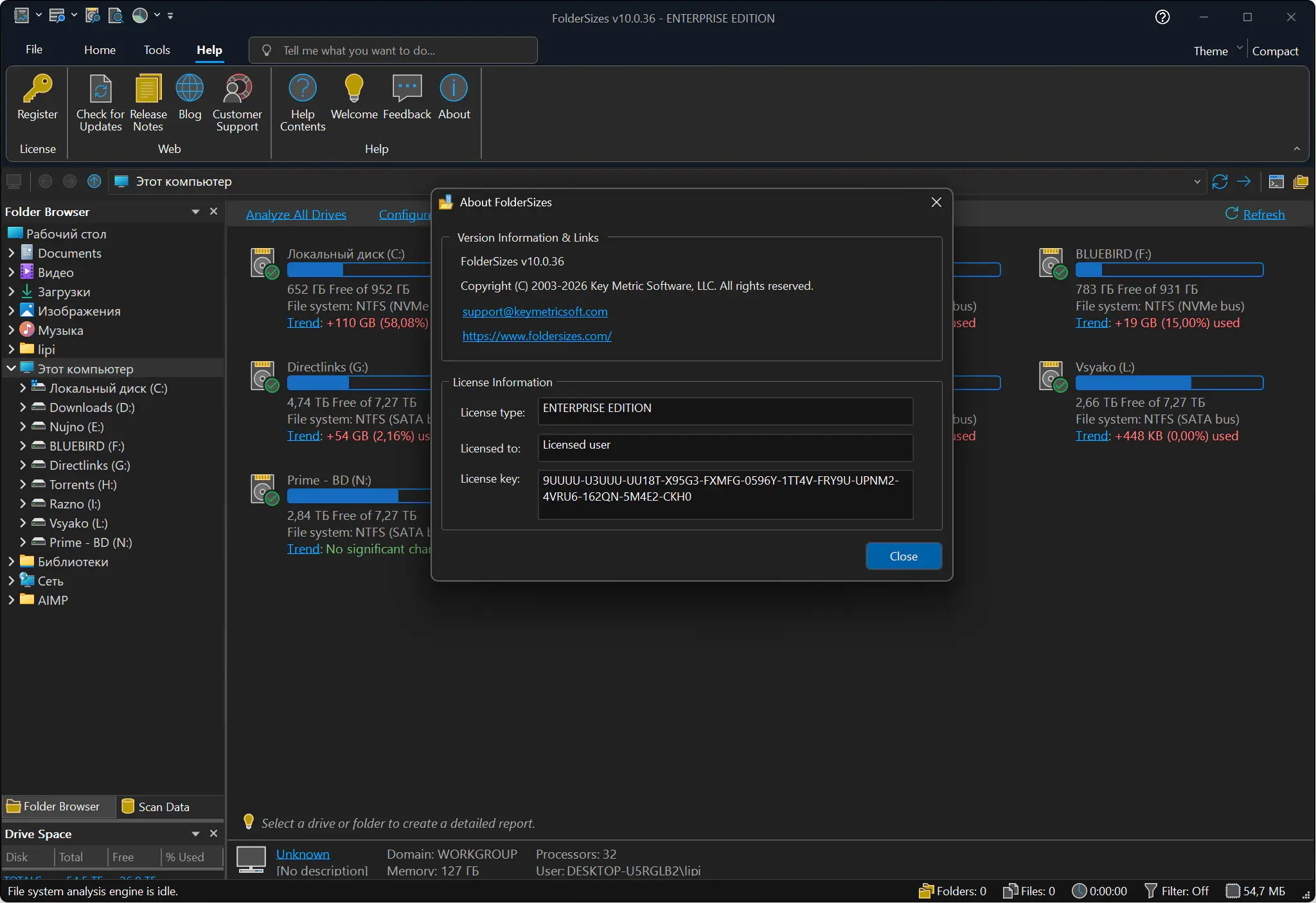 Торрент FolderSizes Enterprise 10.0.36 подробно: