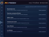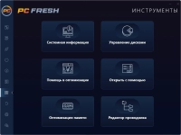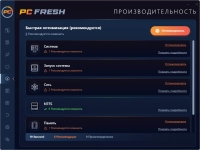 PC Fresh - это мощный, уникальный инструмент для оптимизации работы Вашего компьютера. Позволяет настроить ПК так, как это делают эксперты, улучшить производительность, изменить скрытые настройки, оптимизировать загрузку компьютера, изменить внешний вид Вашей ОС и многое другое. С ее помощью вы сможете тонко настроить свою ОС, очистить ее от разнообразного мусора, ускорить ее работу и прочее.