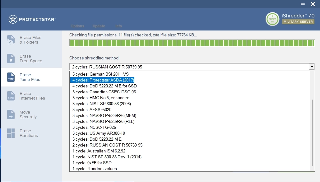 • iShredder™ Windows Server соответствует и превосходит государственные, военные и отраслевые стандарты по безвозвратному стиранию цифровой информации. Программное обеспечение стирает все существующие данные, включая конфиденциальные, секретные и сверхсекретные данные уровня безопасности, например, согласно немецкому стандарту BSI-VS-2011 (TL-03423) армии США AR380-19, DoD 5220.22-M E. и CSEC ITSG-06. Серверные версии предлагают до двадцать три безопасных методов удаления, сертифицированных государственными и военными организациями только для одной цели: безопасного удаления личных данных.
