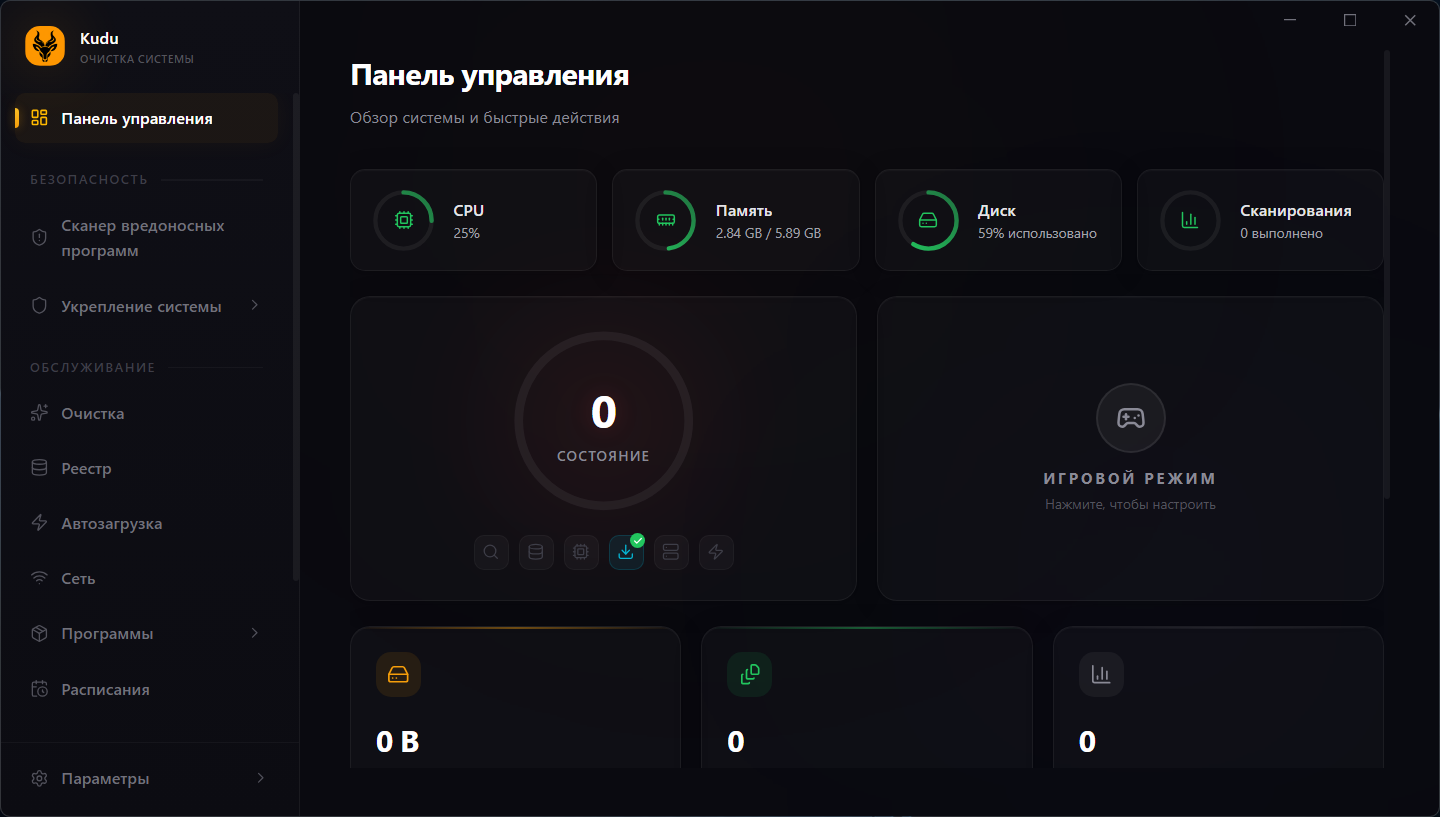 • Оптимизатор игр для Windows в один клик. 18 настроек применяются и полностью отменяются одним нажатием кнопки.