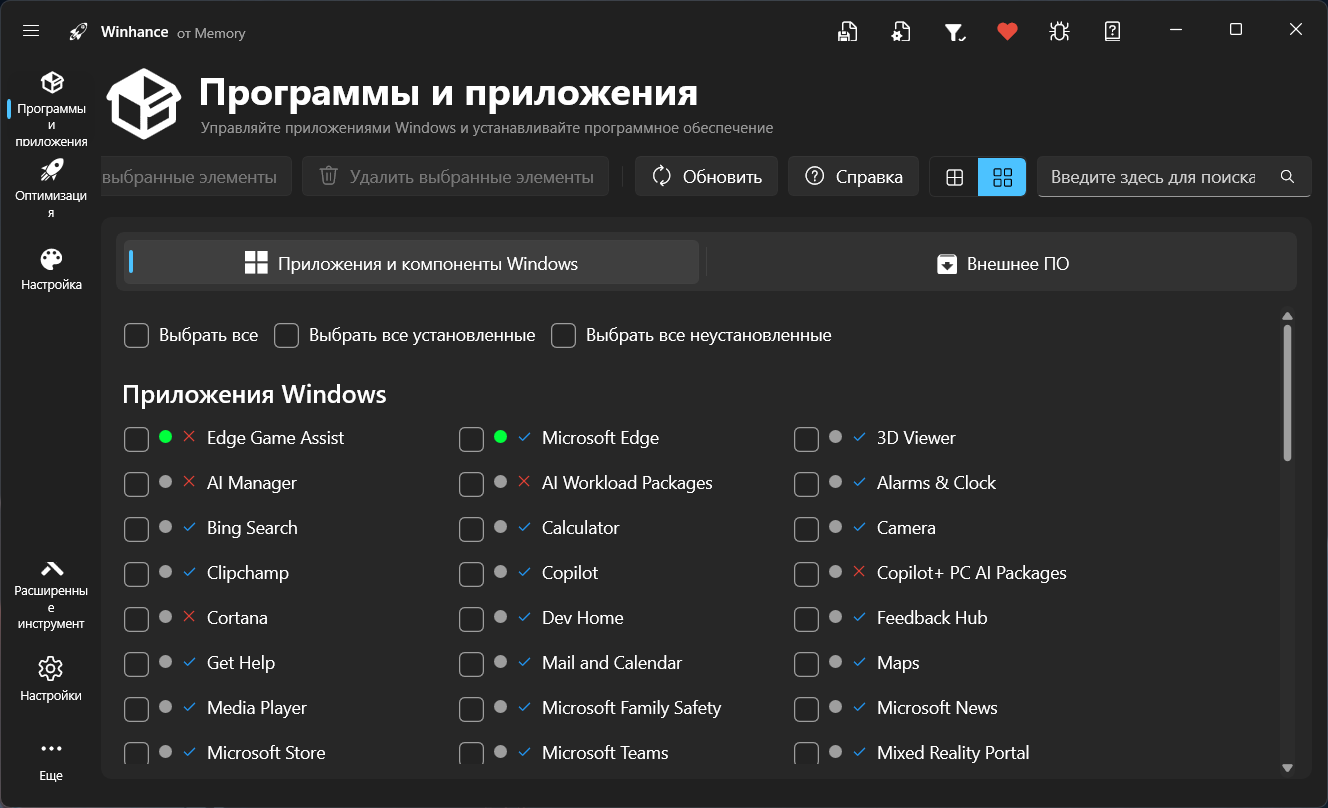 - Microsoft Edge, OneDrive, Copilot, Recall и другие пакеты, возможности и дополнительные функции Windows.