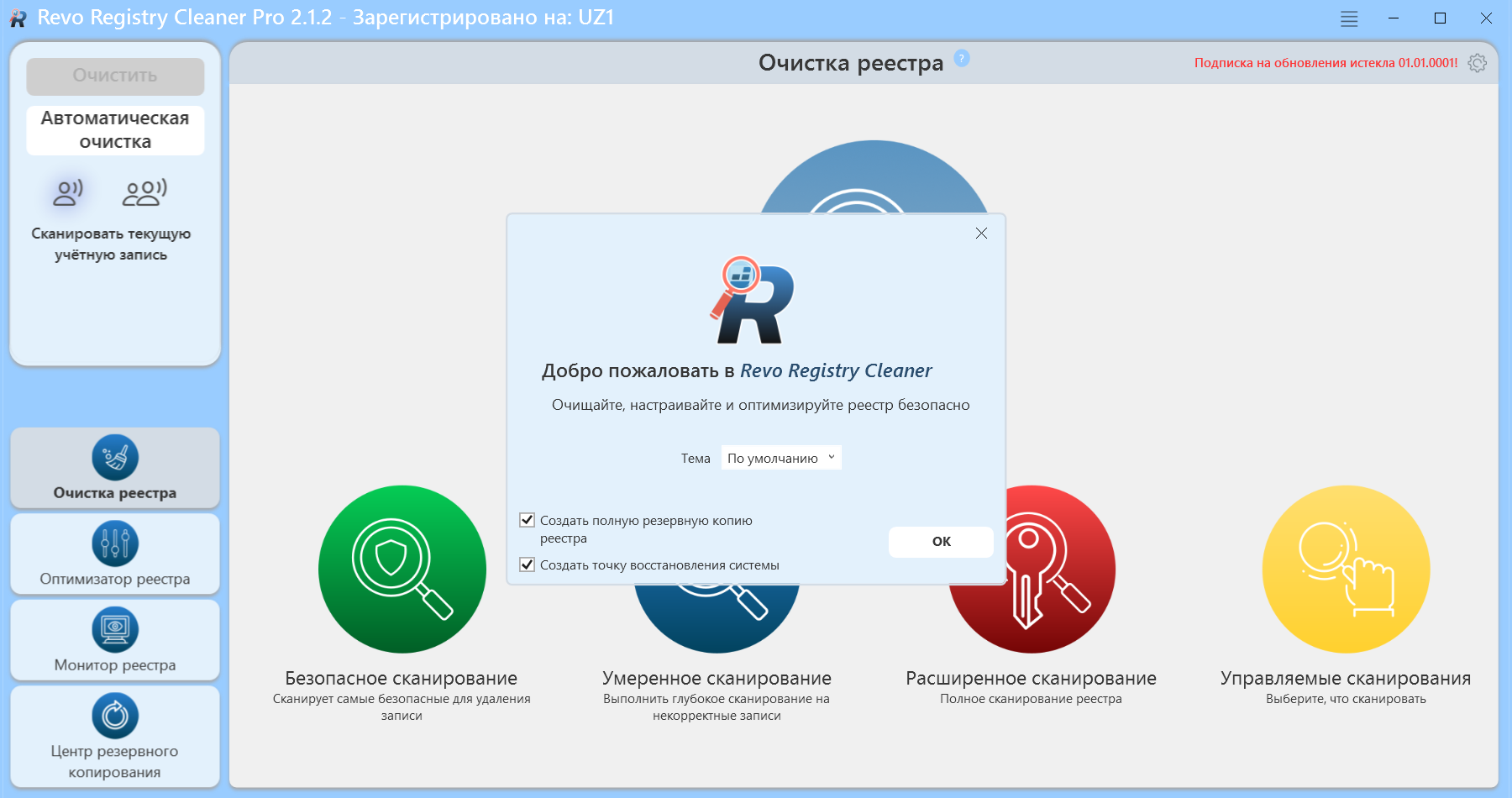 • Возможность создания резервных копий реестра перед внесением изменений.