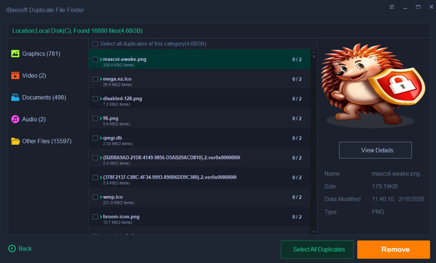Независимо от того, какие дубликаты или похожие файлы находятся на вашем диске, iBeesoft Duplicate File Finder быстро и легко найдет и удалит их одним щелчком мыши. Он поддерживает различные типы данных, включая изображения, видео, аудио, графику и т. д. Благодаря точному алгоритму сопоставления, позволяющему фильтровать дубликаты по размеру файла, местоположению, дате создания и дате последнего изменения, он обеспечивает приблизительно 100% точность результатов без ложных срабатываний.