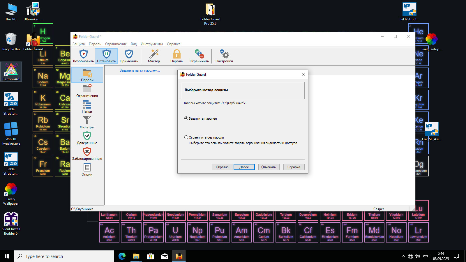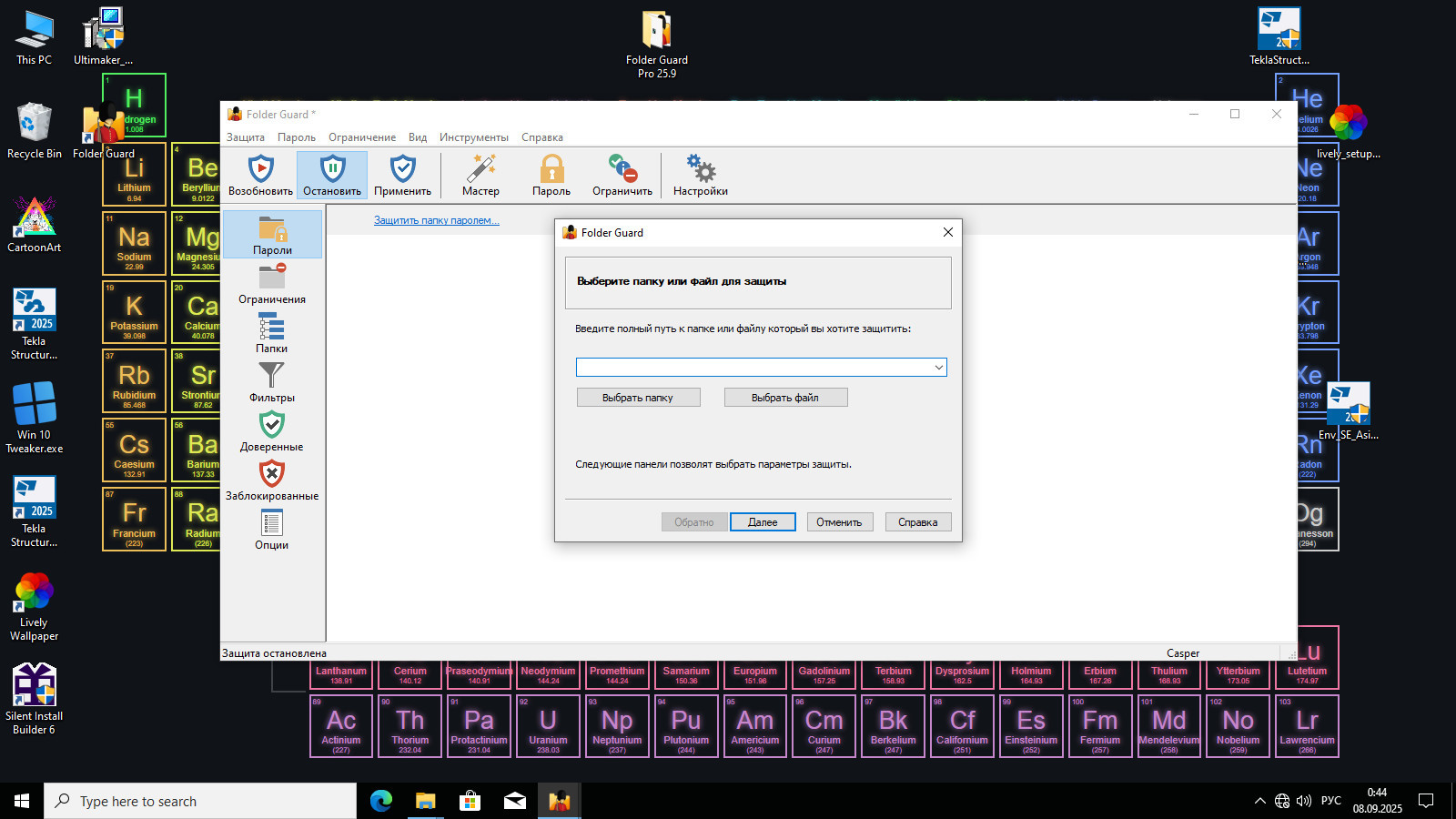 1. Установить программу с бесплатным 30-ти дневным пробным периодом, не запускать (в окне завершения установки снять галочку с "запустить Folder Guard");