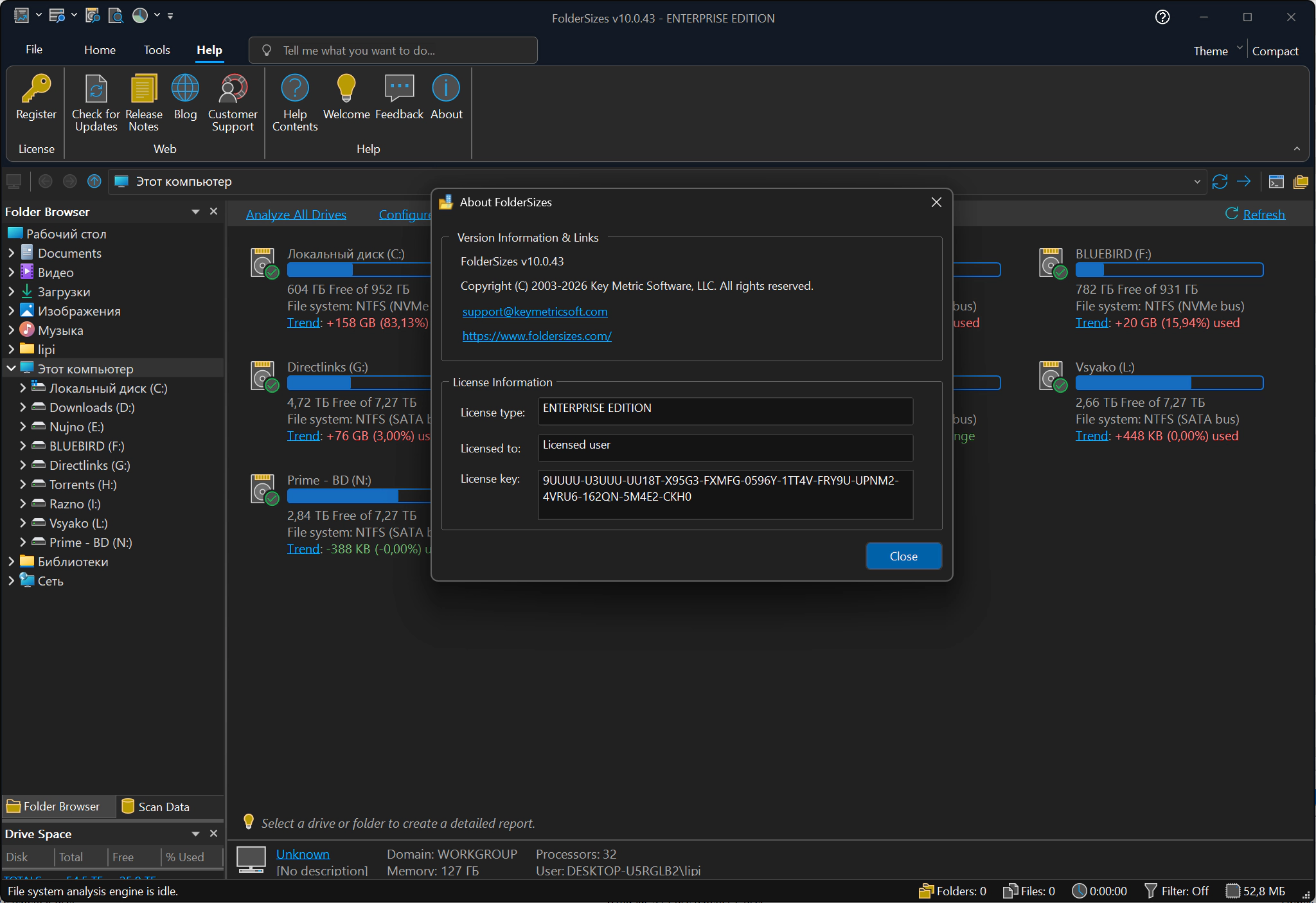 Торрент FolderSizes Enterprise 10.0.43 подробно: