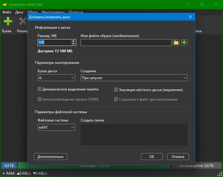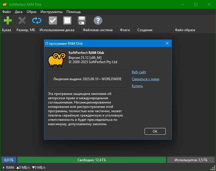 Виртуальный диск в оперативке SoftPerfect RAM Disk 25.12 by KpoJIuK