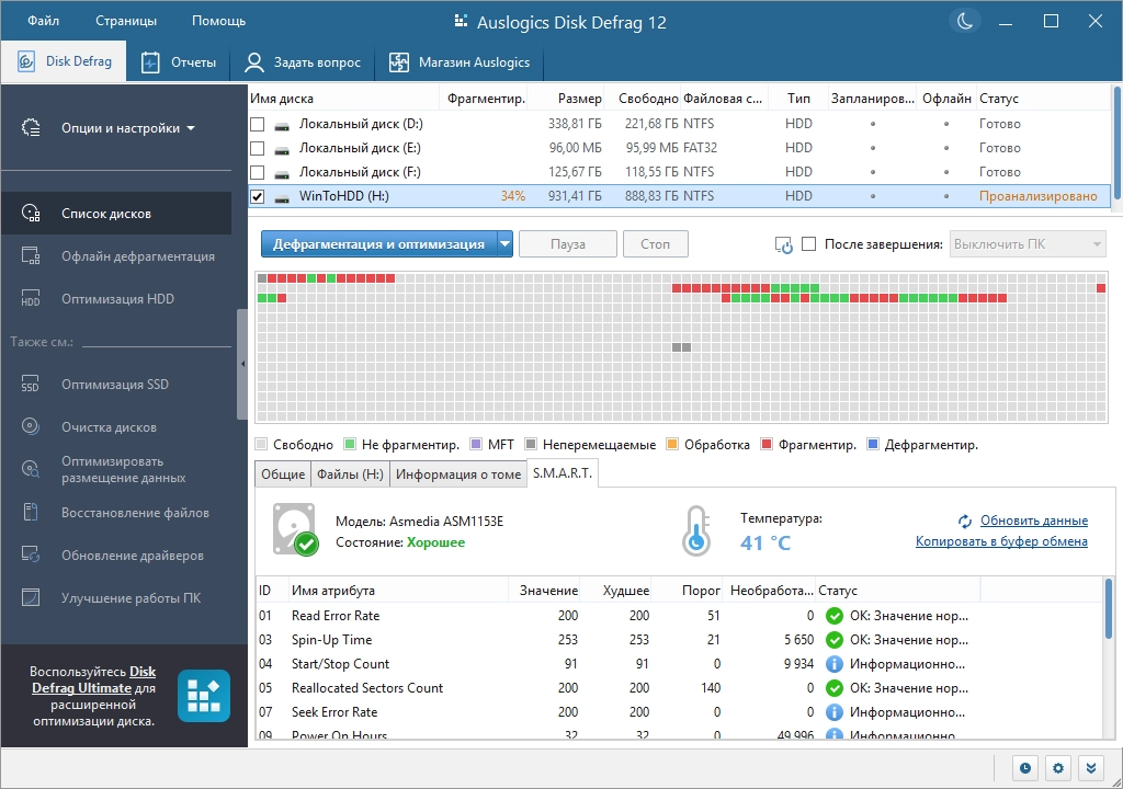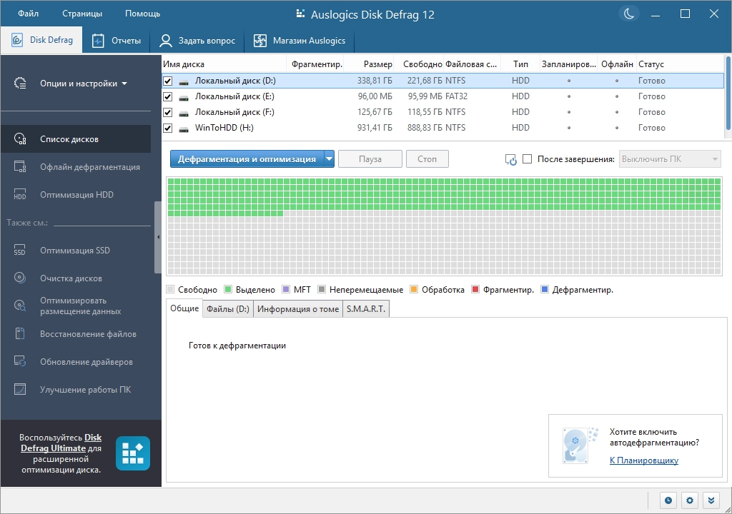 Торрент Auslogics Disk Defrag Pro 12.1.0.1 by TryRooM подробно: