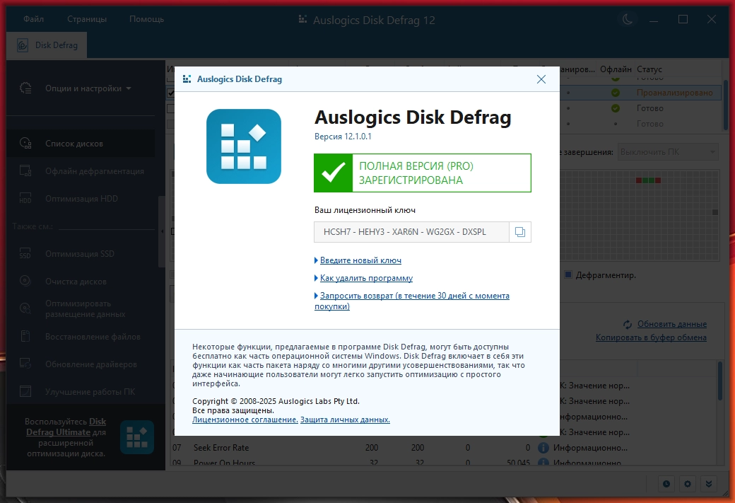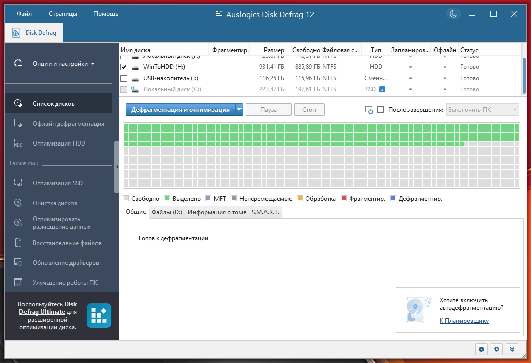Дефрагментатор жестких дисков Auslogics Disk Defrag Pro 12.1.0.1 by Dodakaedr