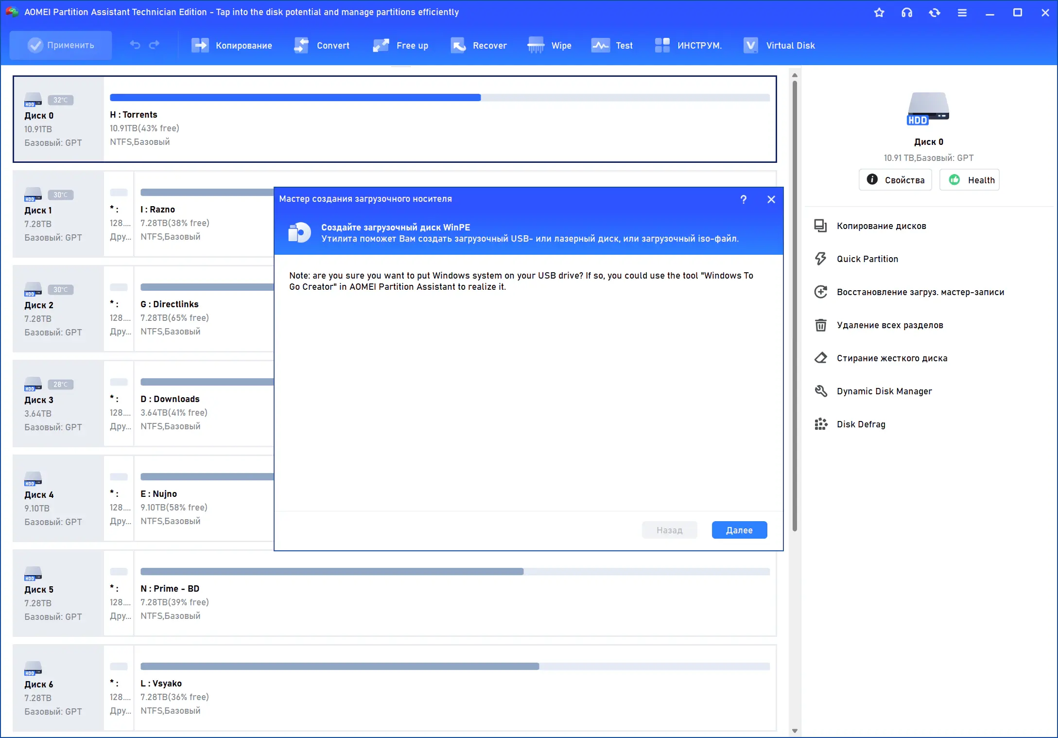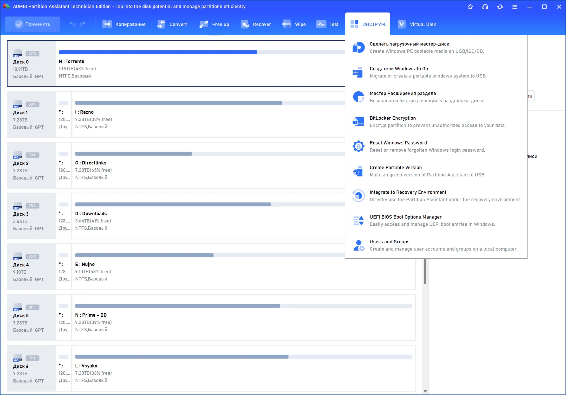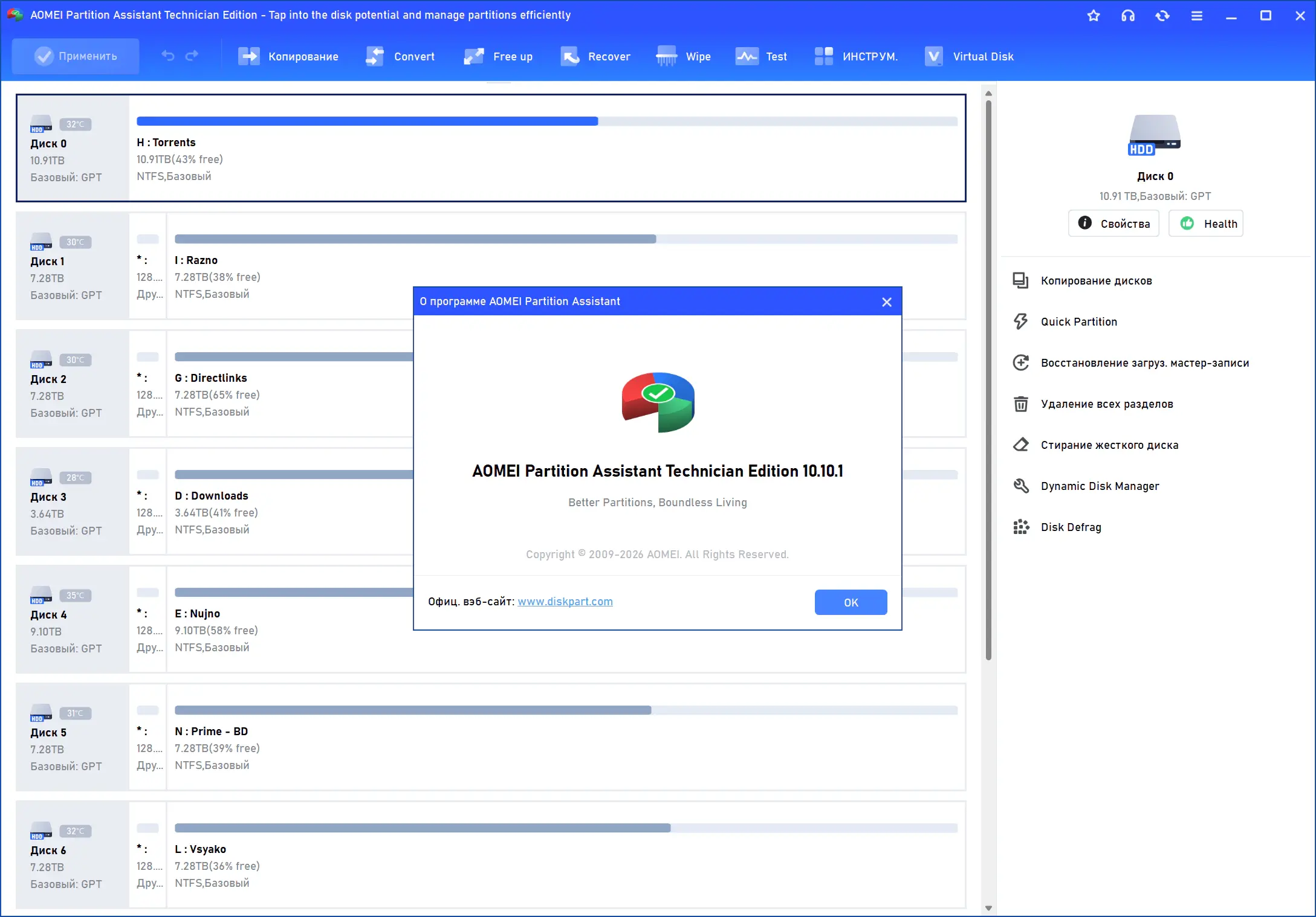 Работа с разделами жесткого диска AOMEI Partition Assistant Technician Edition 10.10.1 + Portable