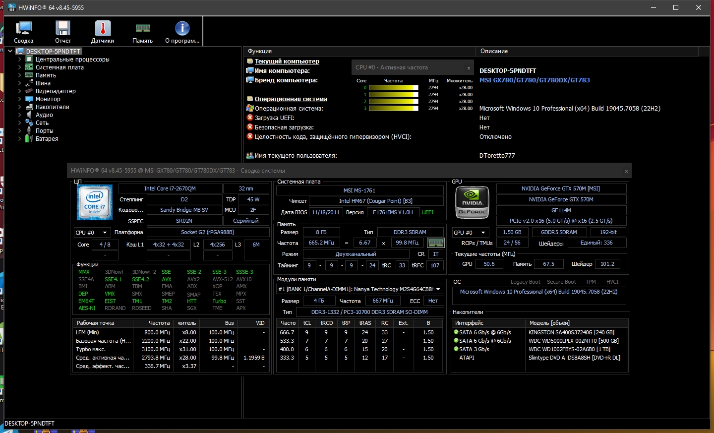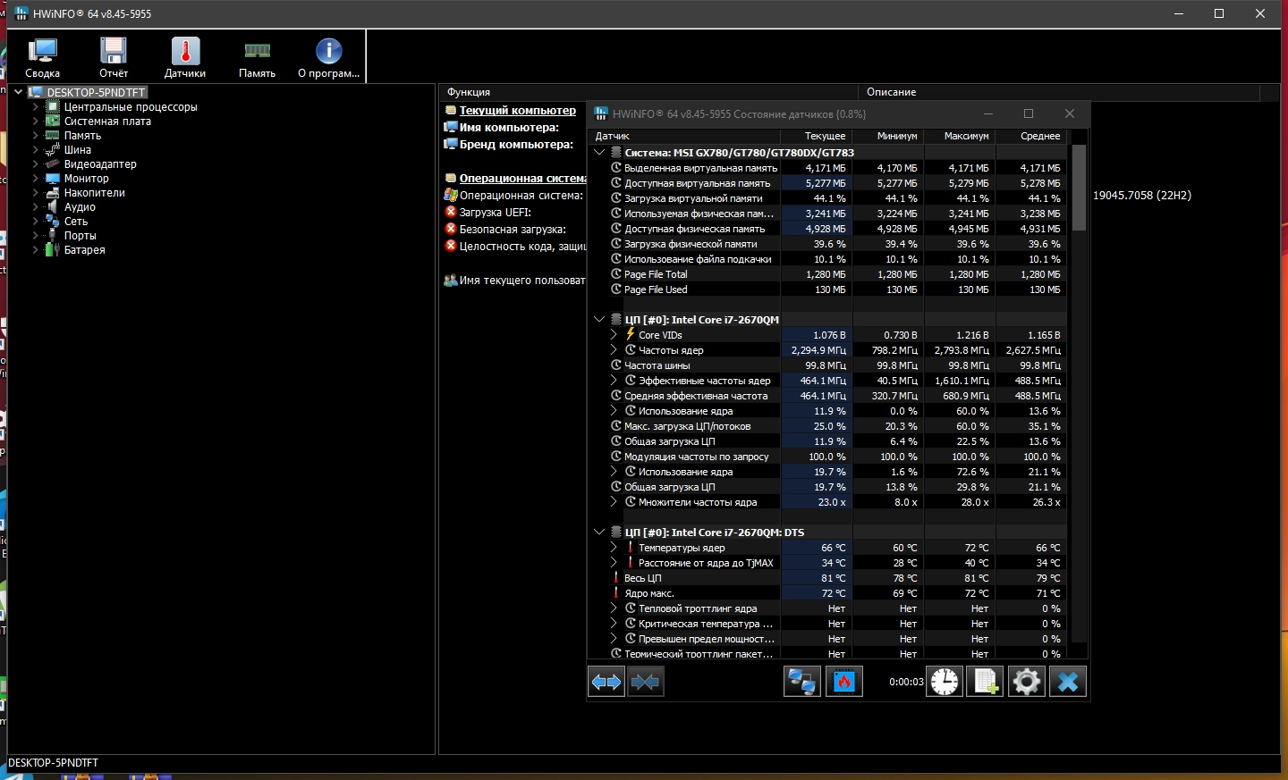 HWiNFO32/64 - мощный информационный инструмент, который собирает важные данные о состоянии аппаратных частей компьютера, включая процессоры, видеокарты, RAM, жёсткие диски, сетевые карты, адаптеры, показания датчиков и т.д. Инструмент поставляется как в установочном варианте, так и портативном.