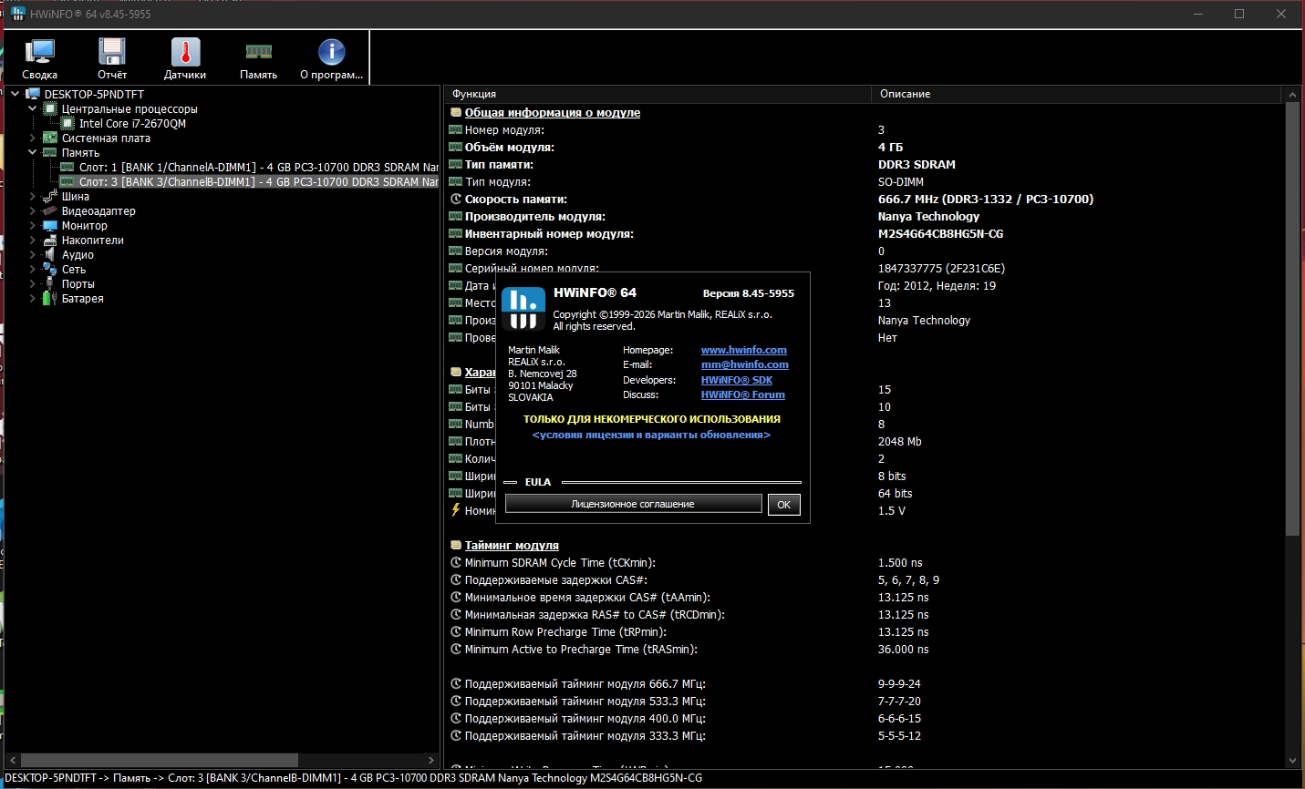 Сбор сведений о компьютере HWiNFO 8.45 Build 5955 Beta Portable